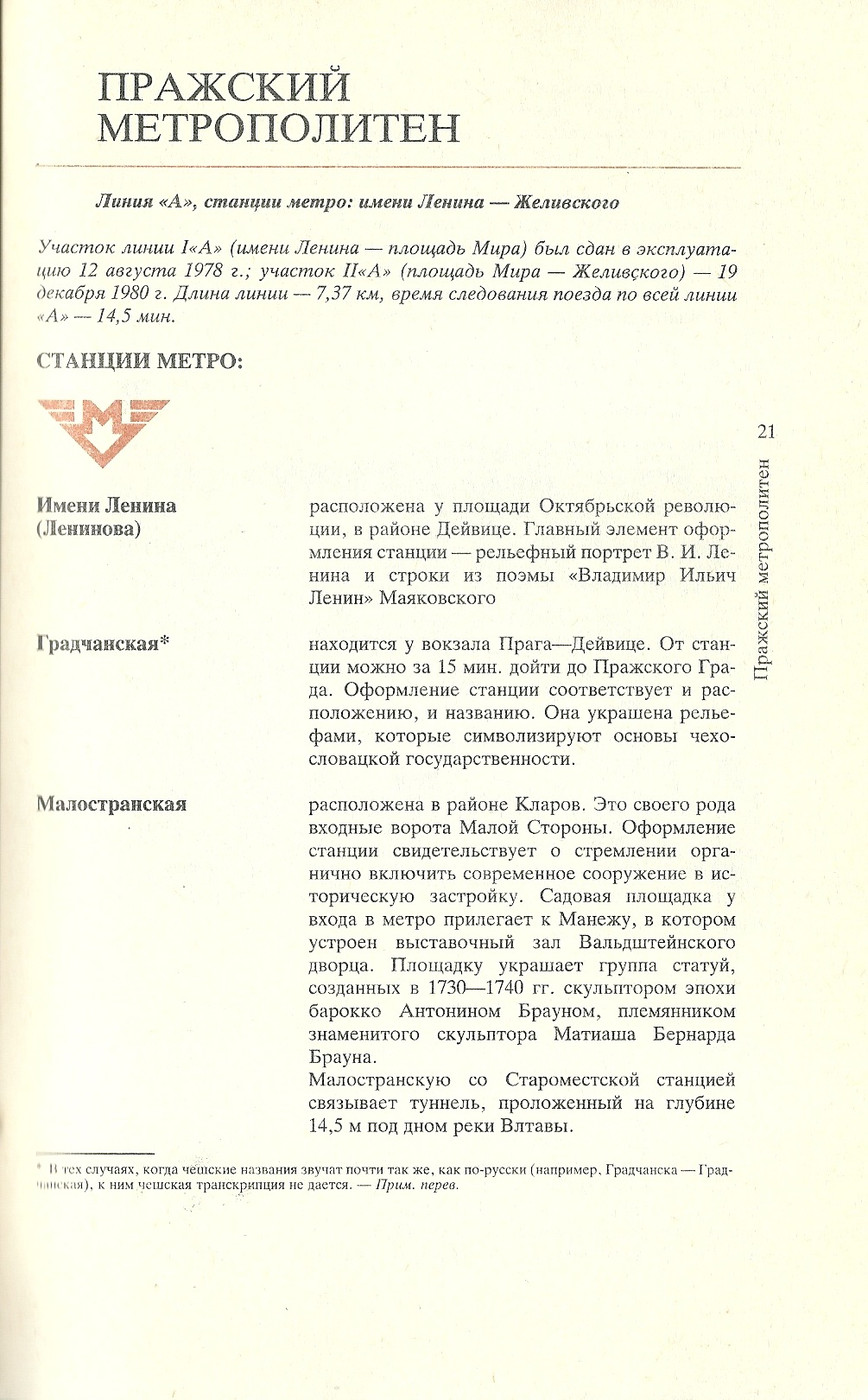 Коллеги, думаю, Вам будет интересна информация о Пражском метрополитене по состоянию на конец 80-х гг. из книги Цтибора Рыбара "Прага". Москва, "Планета", 1989.