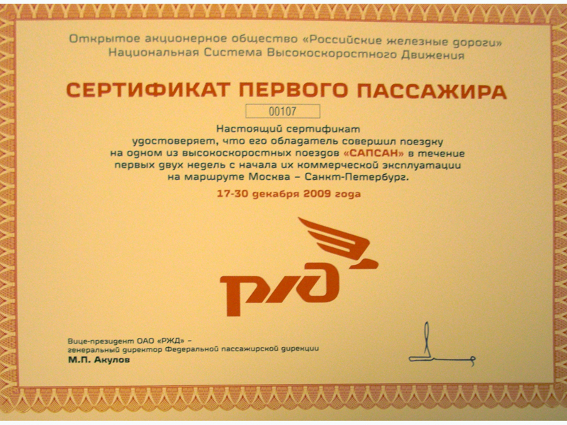 Сегодня первые десять машинистов получили сертификаты на право управления высокоскоростным поездом "Сапсан".