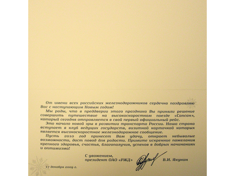 Напомним, что ввод в эксплуатацию первых трех скоростных электропоездов "Velaro RUS" ("Сапсан") немецкой компании Siemens намечен на 23 декабря 2009 года. Поезда будут курсировать на направлениях Санкт-Петербург - Москва и Москва - Нижний Новгород со скоростью до 250 км/ч.