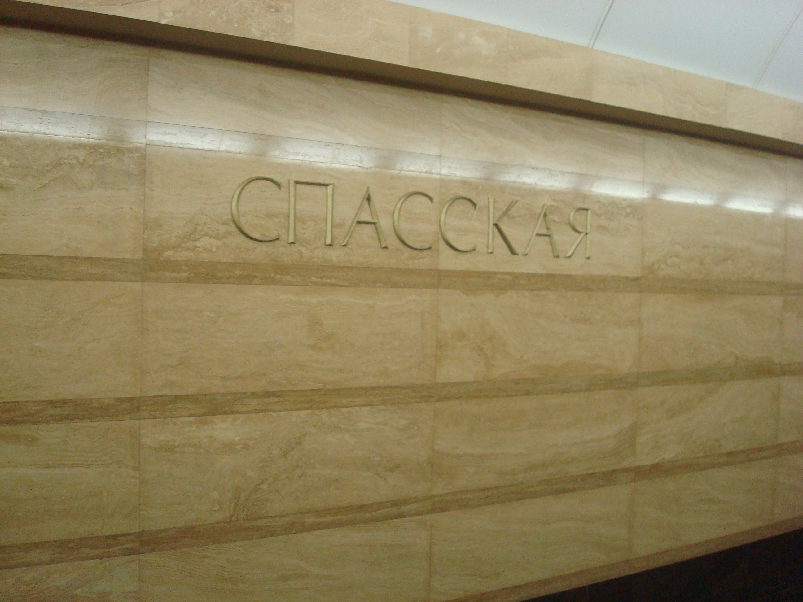 2. Спасская производит благоприятное впечатление. Конечно, пилоны крайне массивны, но приятный бежевый камень (неужто гранит??? вроде непохож по текстуре) и хорошее освещение + то что центральный зал не укорочен, не дают станции казаться мрачной и давящей. Слав Богу не серый или темный камень, вот тогда вышло б совсем мрачно. Волковская - пасторально хайтеково веселенько-смешная, Звенигородская строга и ярка, Спасская - монументально-классична, даже я б сказал - антична.