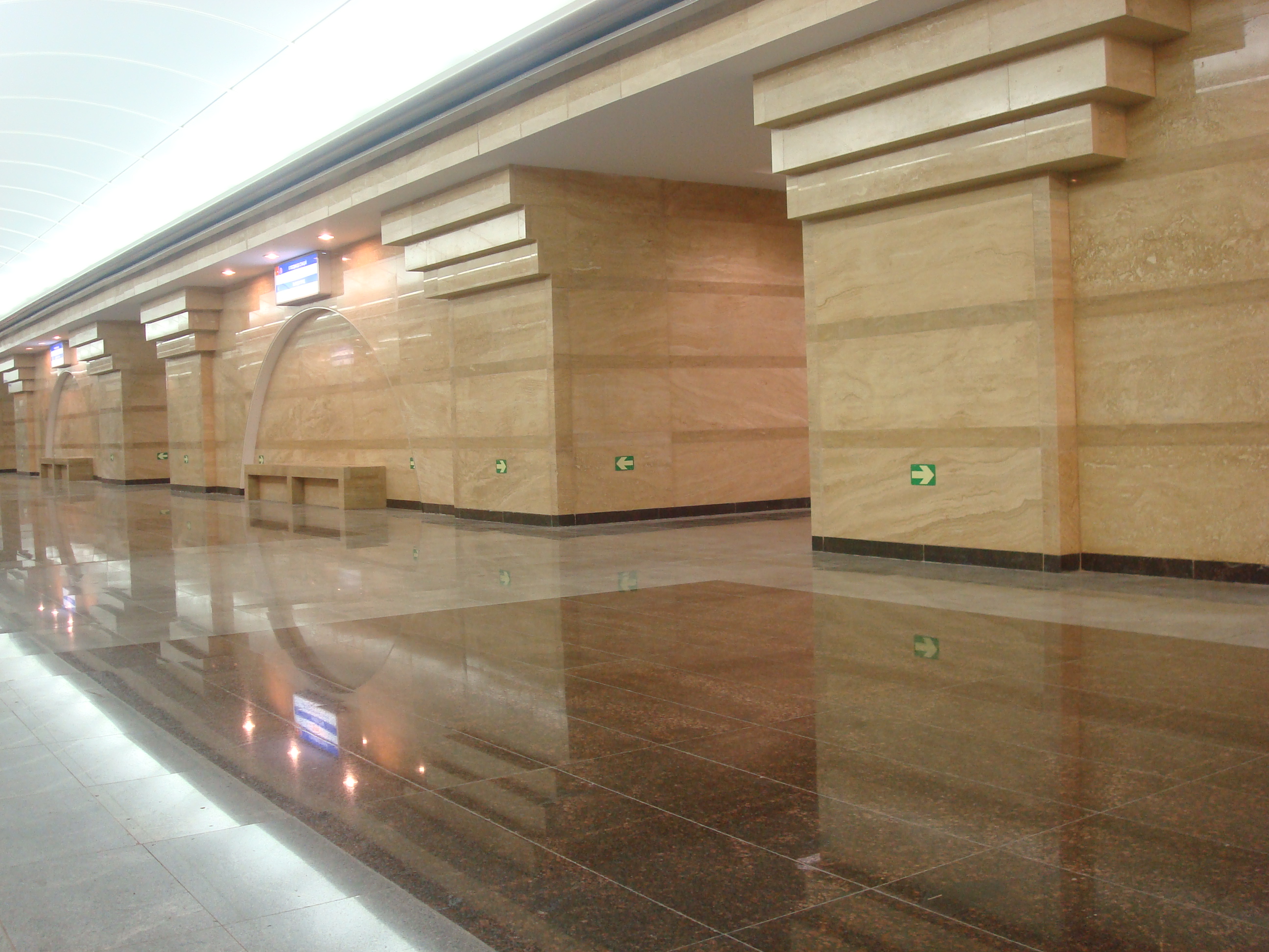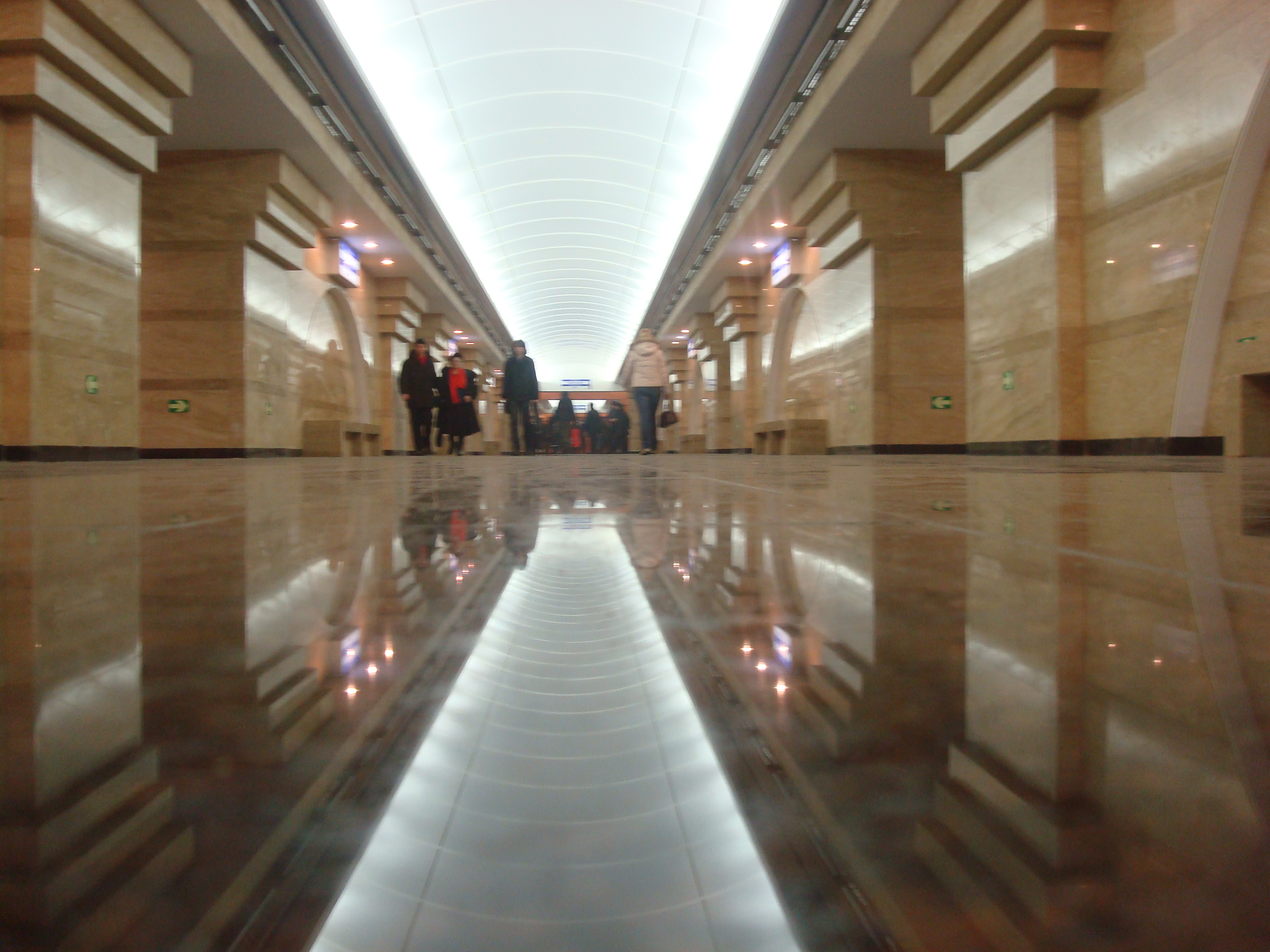 Не обратил внимание кстати - в переходах и на самой станции пол одинаковый? В переходах обалденно скользкий и если одинаковый - понятно почему на платформах пол неполированый. Чтобы люди на рельсы не наворачивались.