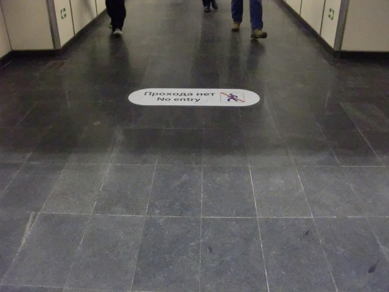 насчет этой наклеечки есть нюанс, там лайтбокс запрещающий движение в этом направлении висит неудачно - высоко и до прохода на правую сторону, поэтому его как легко не заметить, так и не имеет смысла его соблюдать, потому что пройти на правую сторону можно и за ним. а вот эту наклейку трудно не заметить.