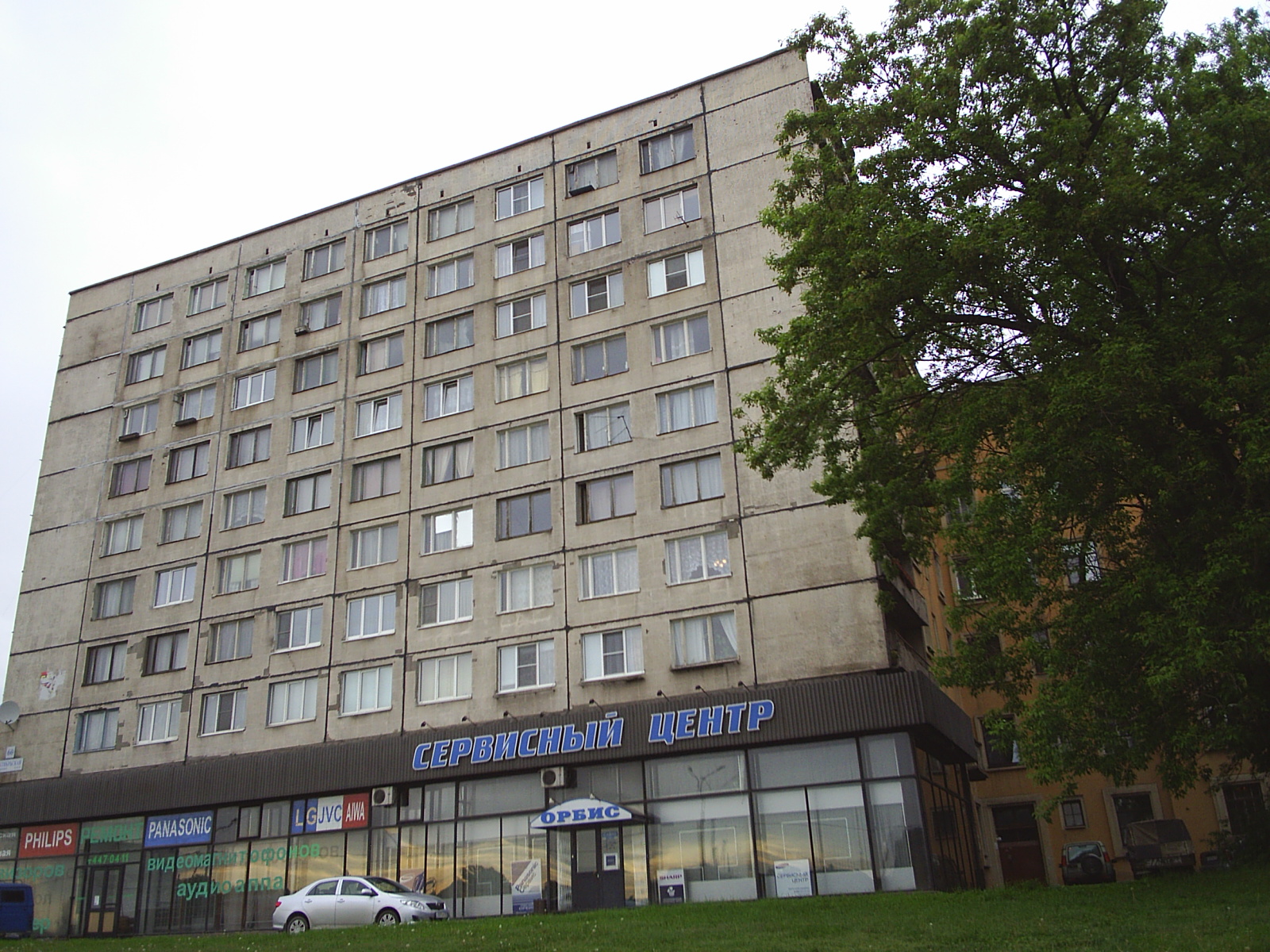 Октябрьская наб. 60<br />левые 8 окон смещены и соответственно в комнатах два окна