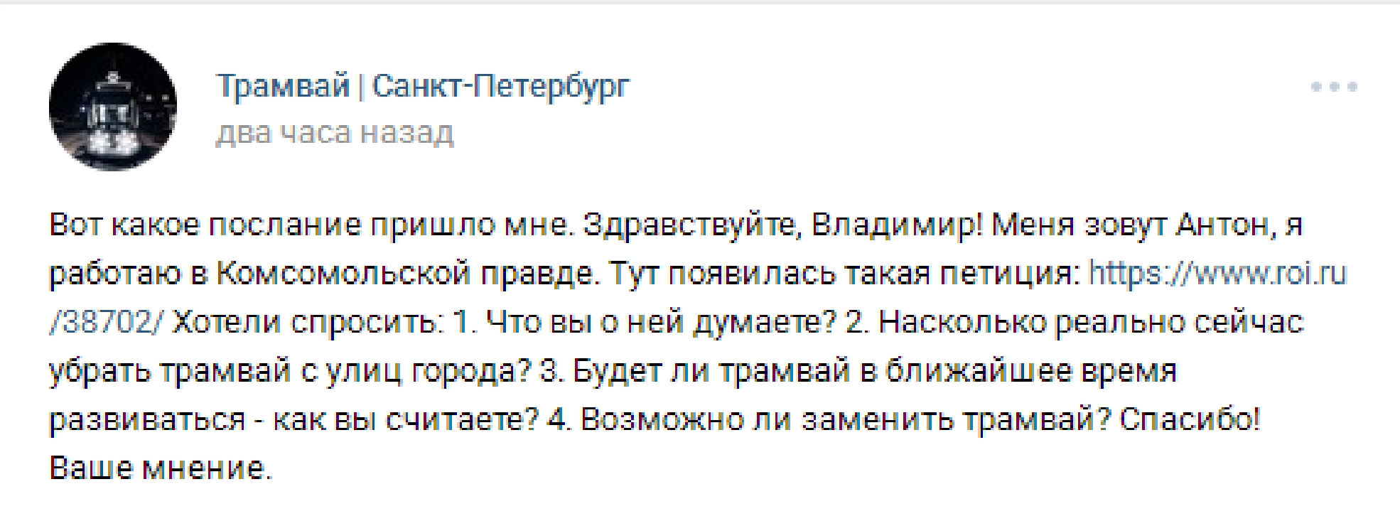 Убрать трамваи с улиц Санкт Петербурга