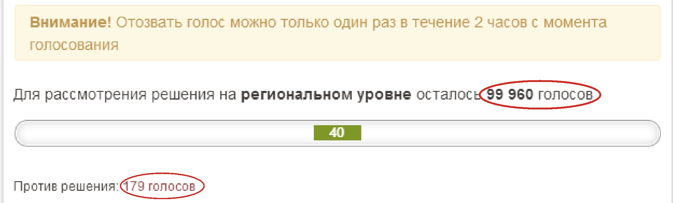 Для рассмотрения решения на региональном уровне осталось 99 960 голосов