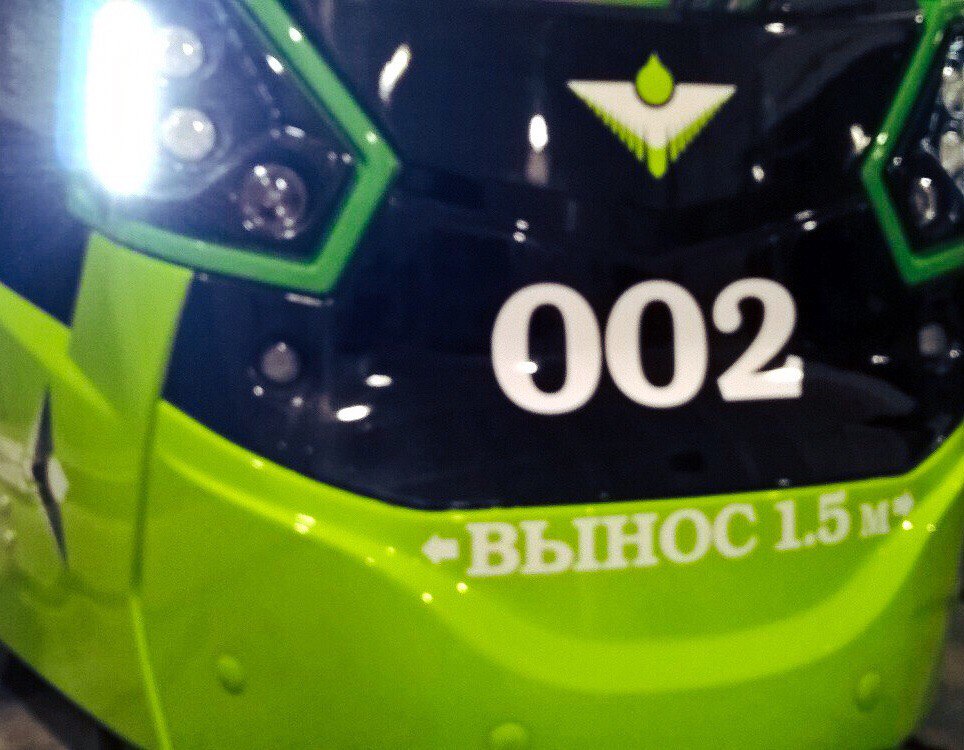 Не на все трамваи ещё нанесли номера. Пока стоял приехал один без номера (по стеклом цифра 7) и один с номером 002.