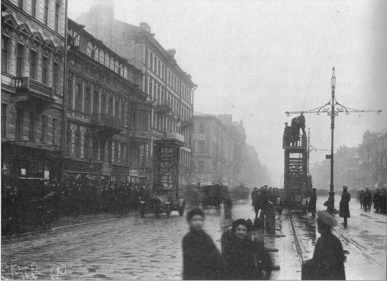Почти попали, но не точно, фото сделано в аккурат на нынешней троллейбусной остановке "Пл. Восстания" у дома 77 по Невскому пр., на фото собственно перекрёсток Невского и Марата в направлении на Адмиралтейство.
