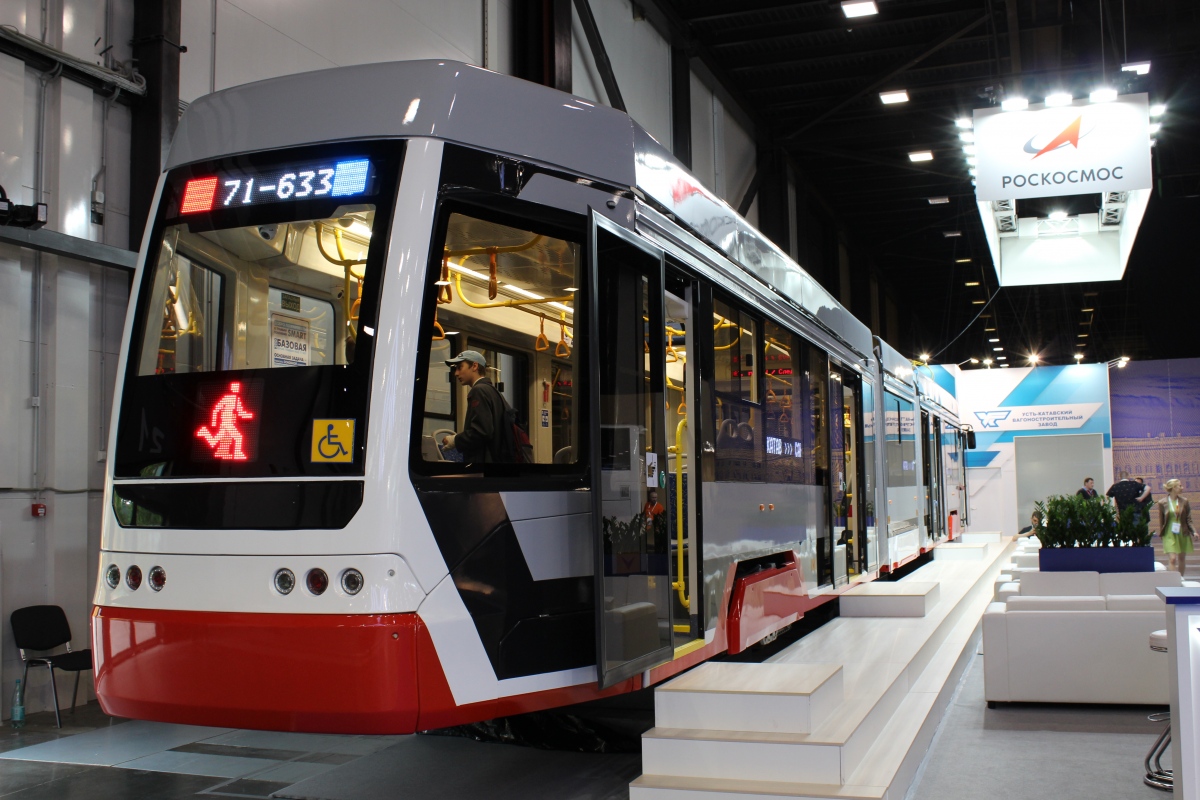 Трамвай модели 71-633, предположительно заводской номер 2 или 3, участвующий в выставке Smart Transport 2019, Прибыл в ТП7 для прохождения испытаний: