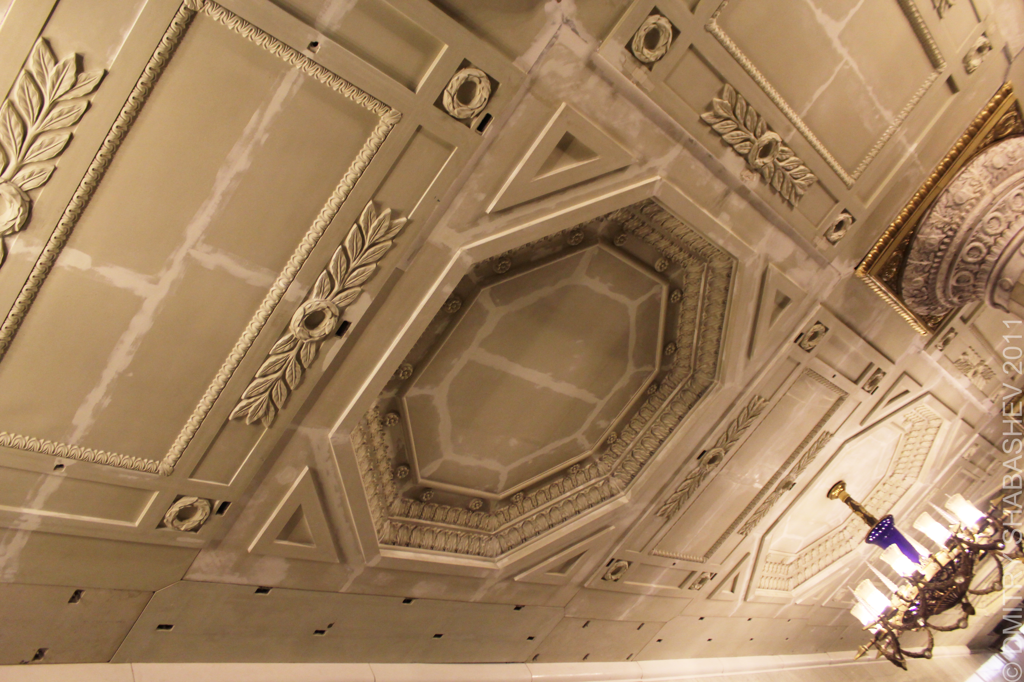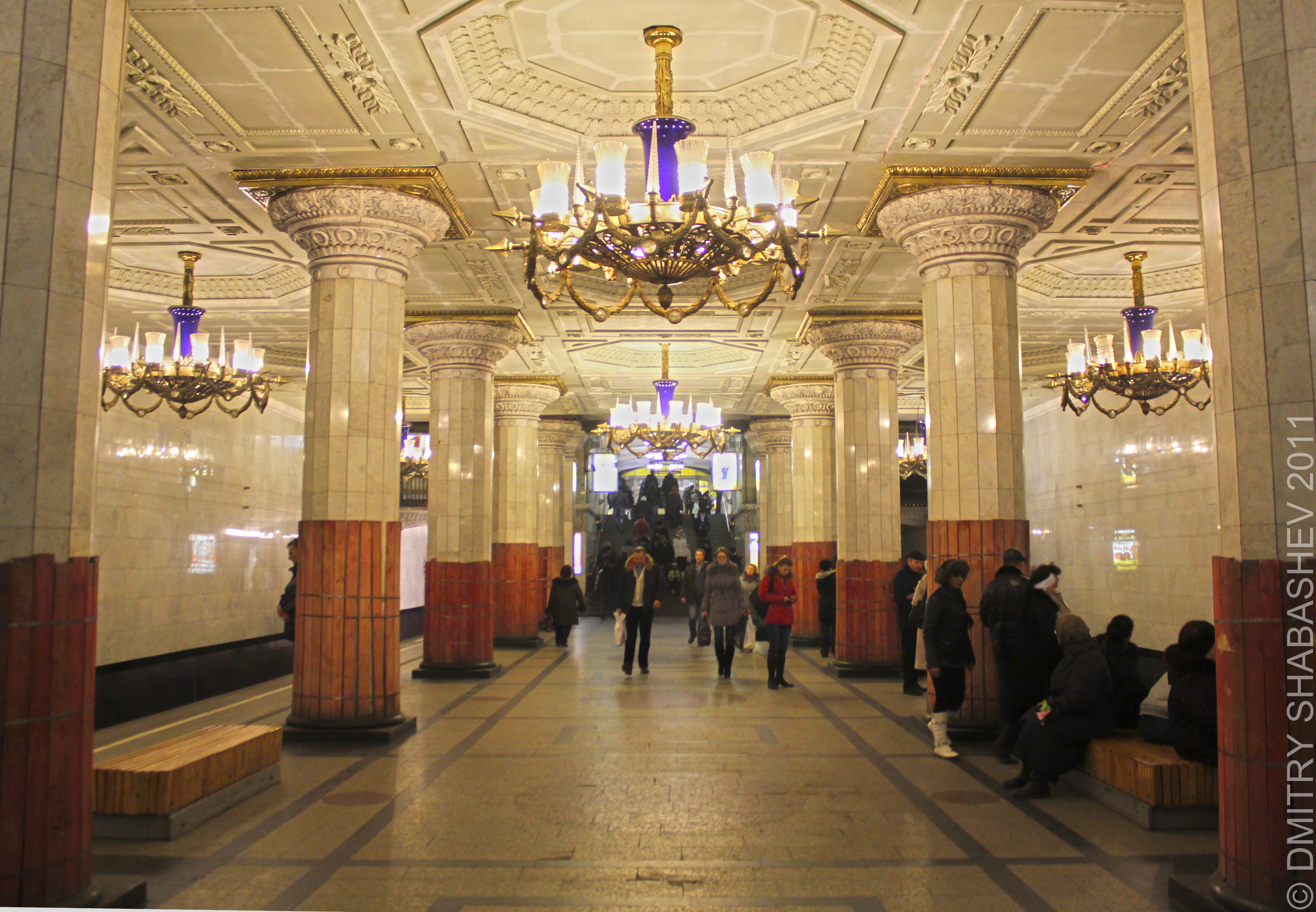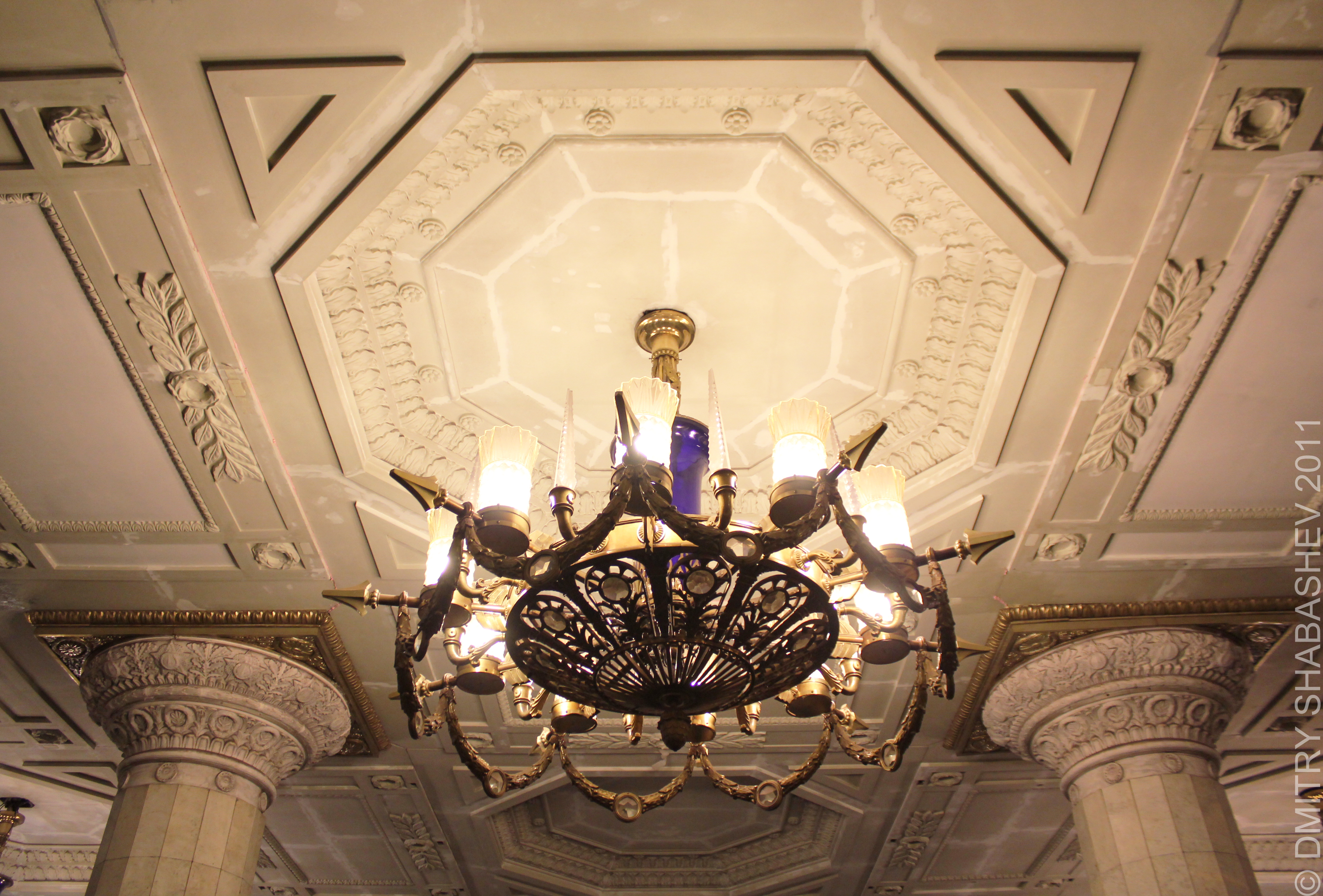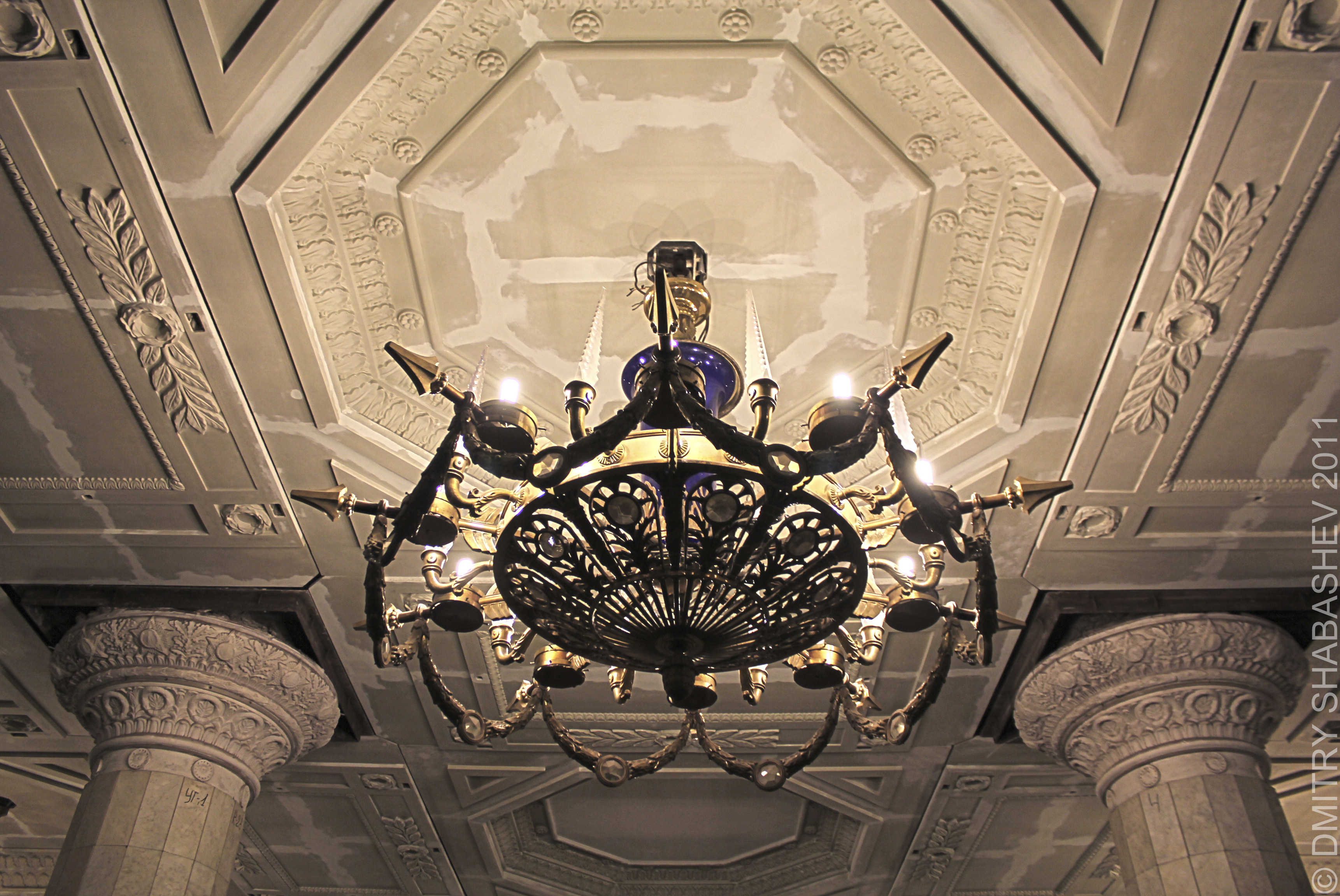 А вот софиты для подсветки панно - не айс. Выходишь из первого вагона - и получаешь ярким светом по глазам. Но мечтать о возврате люстры уже не приходится, судя по всему...