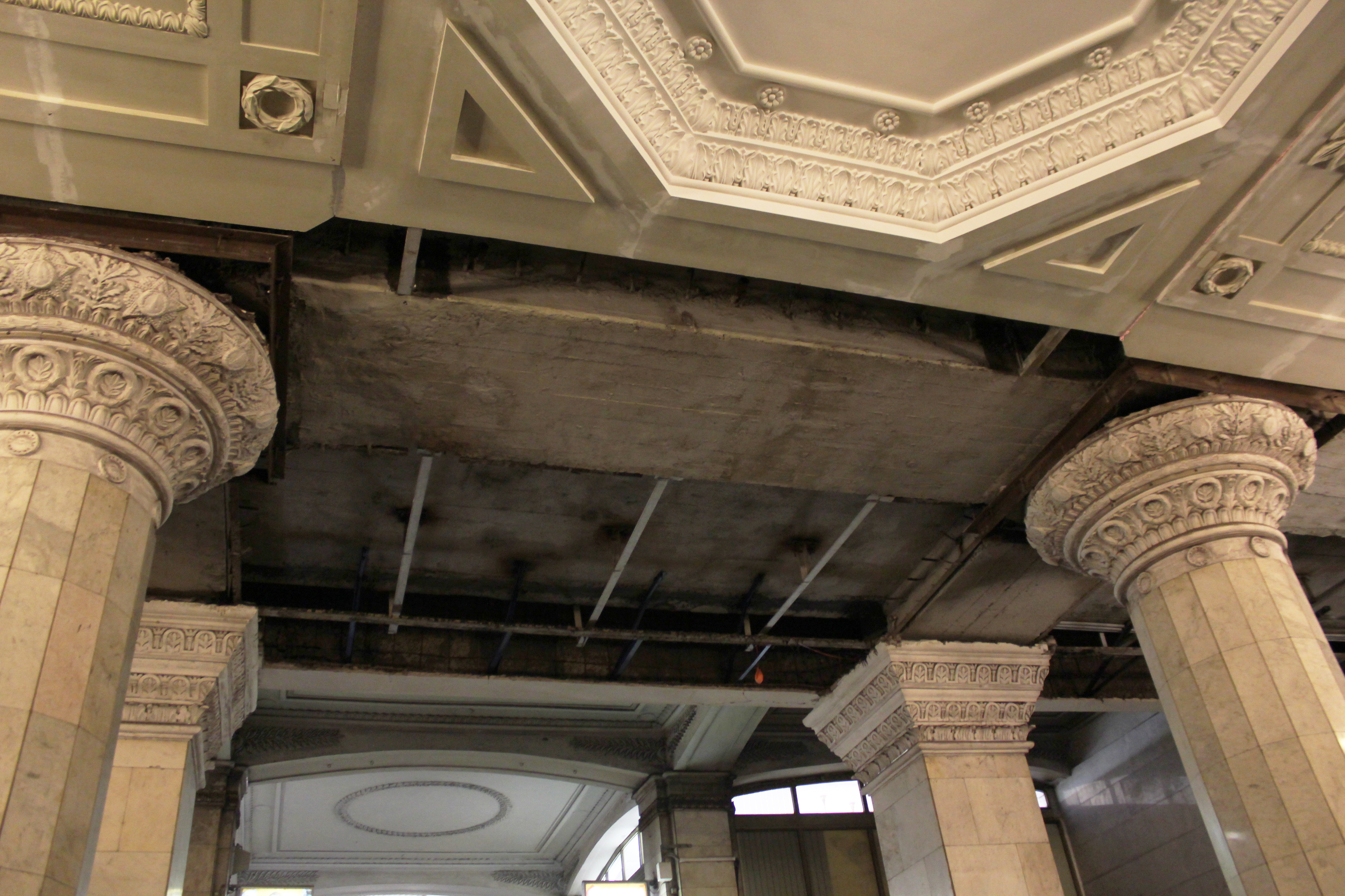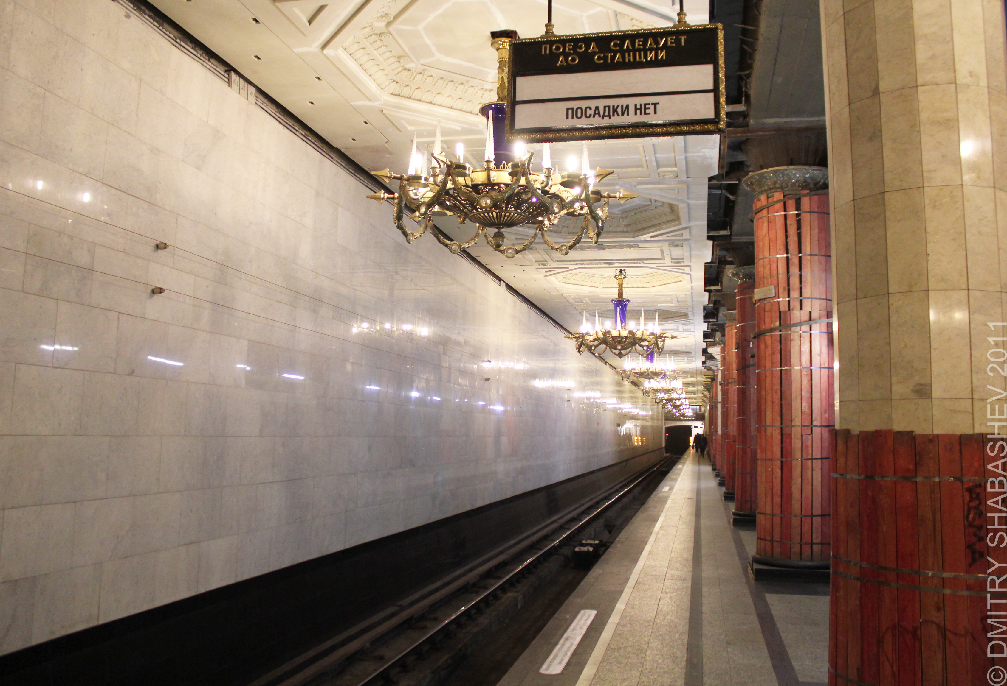 На фото табло висят на первом участке колонн (от лестничного спуска), облицованных мрамором.