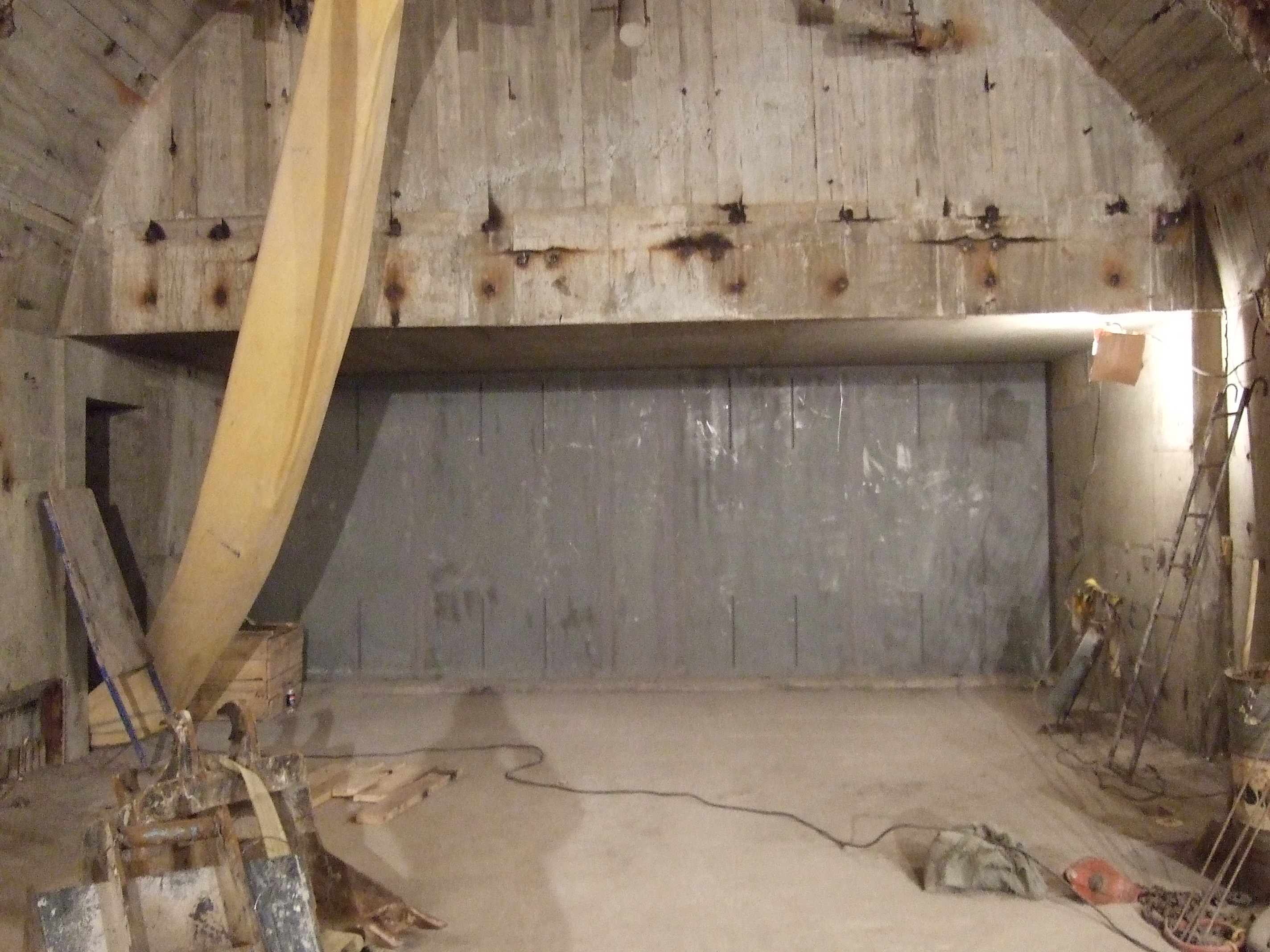 Щит остановлен. Последнее кольцо смонтировано (мне сказали, что в воскресенье замкнули). Осталось очистить натяжную от породы и бетонной крошки, выдавленной внутрь камеры рабочим органом щита, разобрать внутренности ТПМК и забетонировать участок обделки на длину его оболочки.
