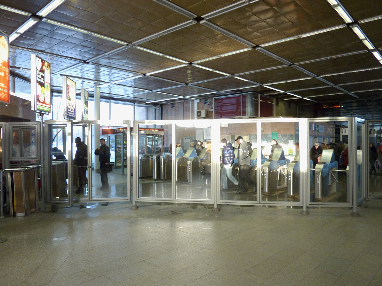 Единственный минус - если большая очередь в кассы, то приходиться протискиваться через людей, стоящих поперёк входу. Ну так, думаю, на многих вестибюлях.