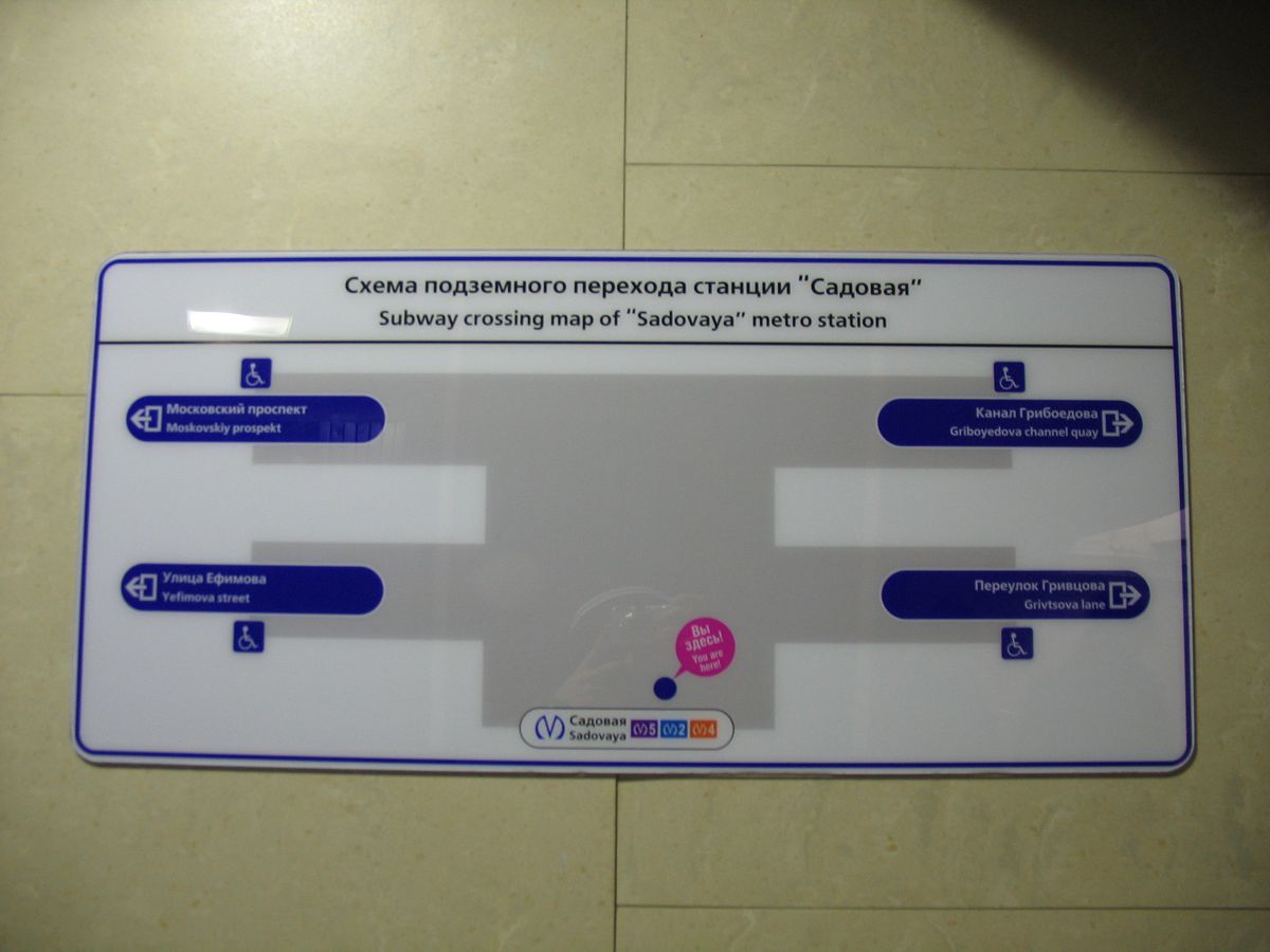 PS: похоже, что создатели данного указателя так спешили, что даже не удосужились сверить своё "творение" с реальной схемой существующего подземного перехода. Подоснова перехода использована либо с "Московской", либо с "Невского проспекта", либо с "Проспекта Ветеранов".