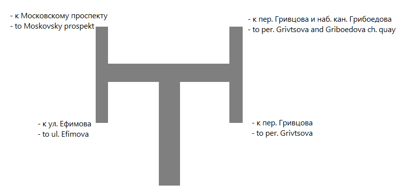 -Выход на Сенную площадь, Садовую улицу и пер. Гривцова, к наб. канала Грибоедова
