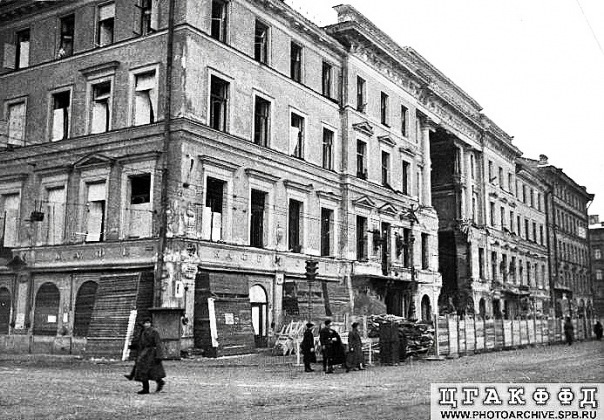 - Поврежденная часть дома №30 по проспекту 25-го Октября, пострадавшего от артиллерийского обстрела. 25 ноября 1941г. Рахмилович А.С.