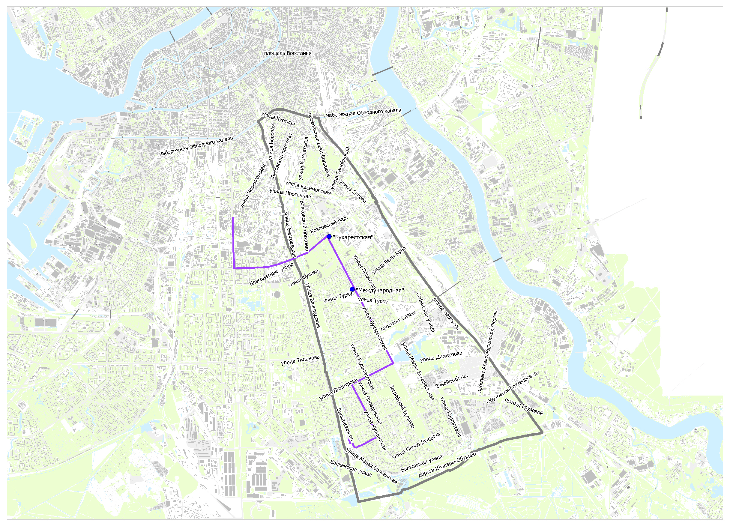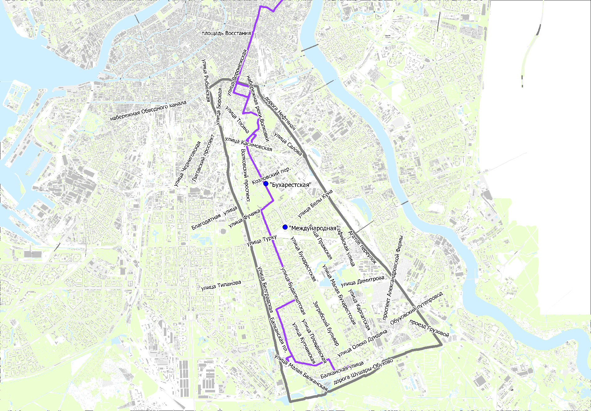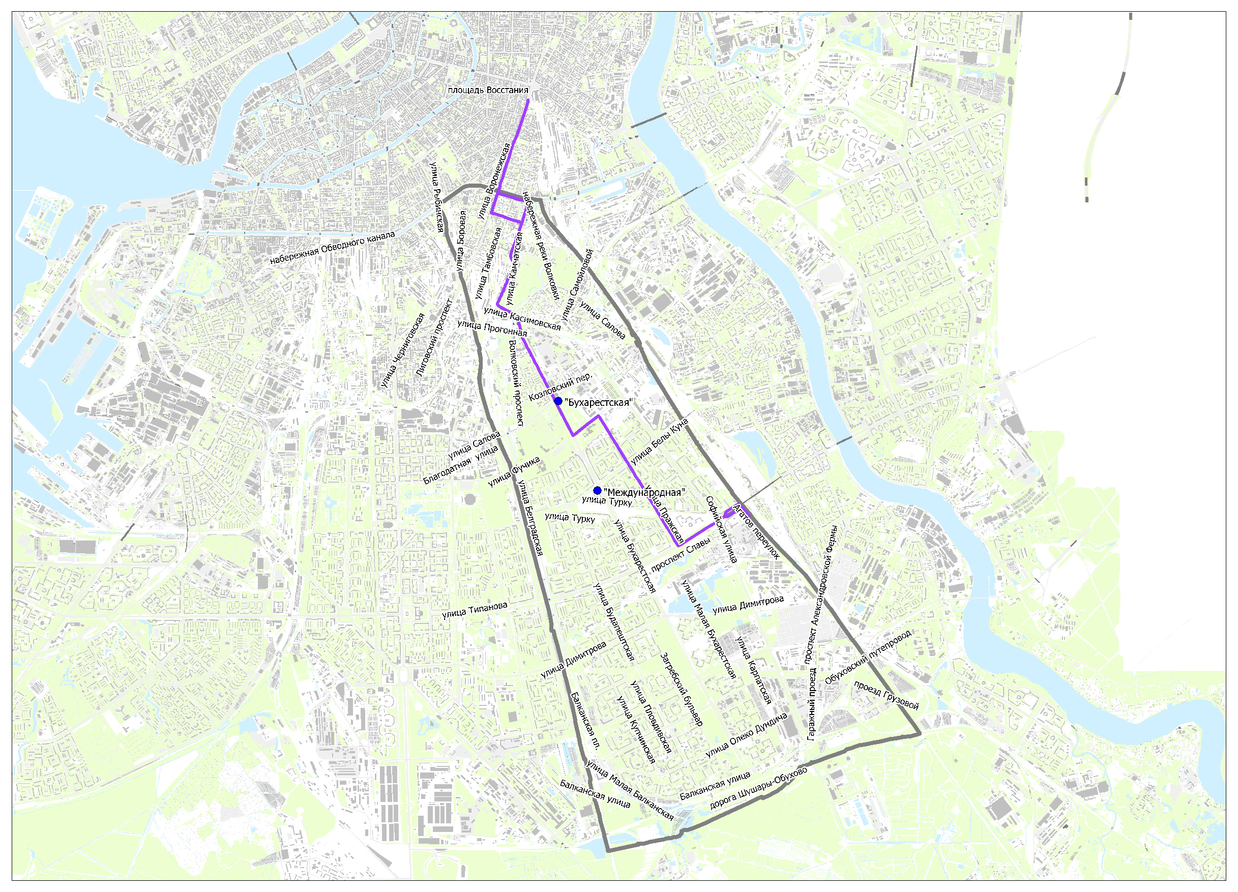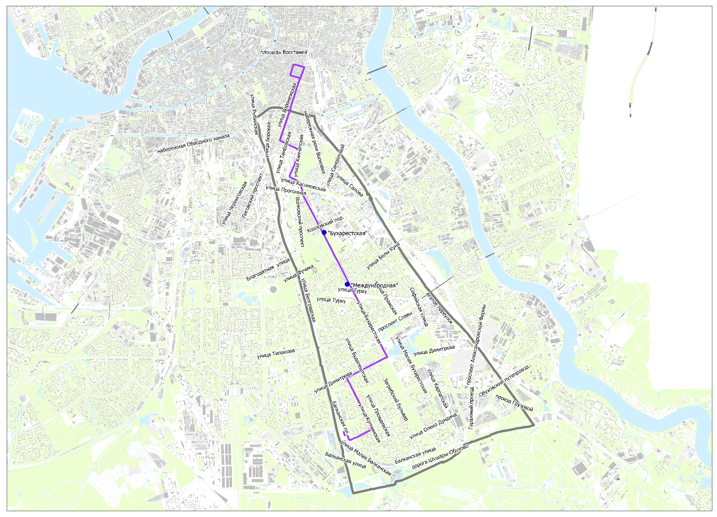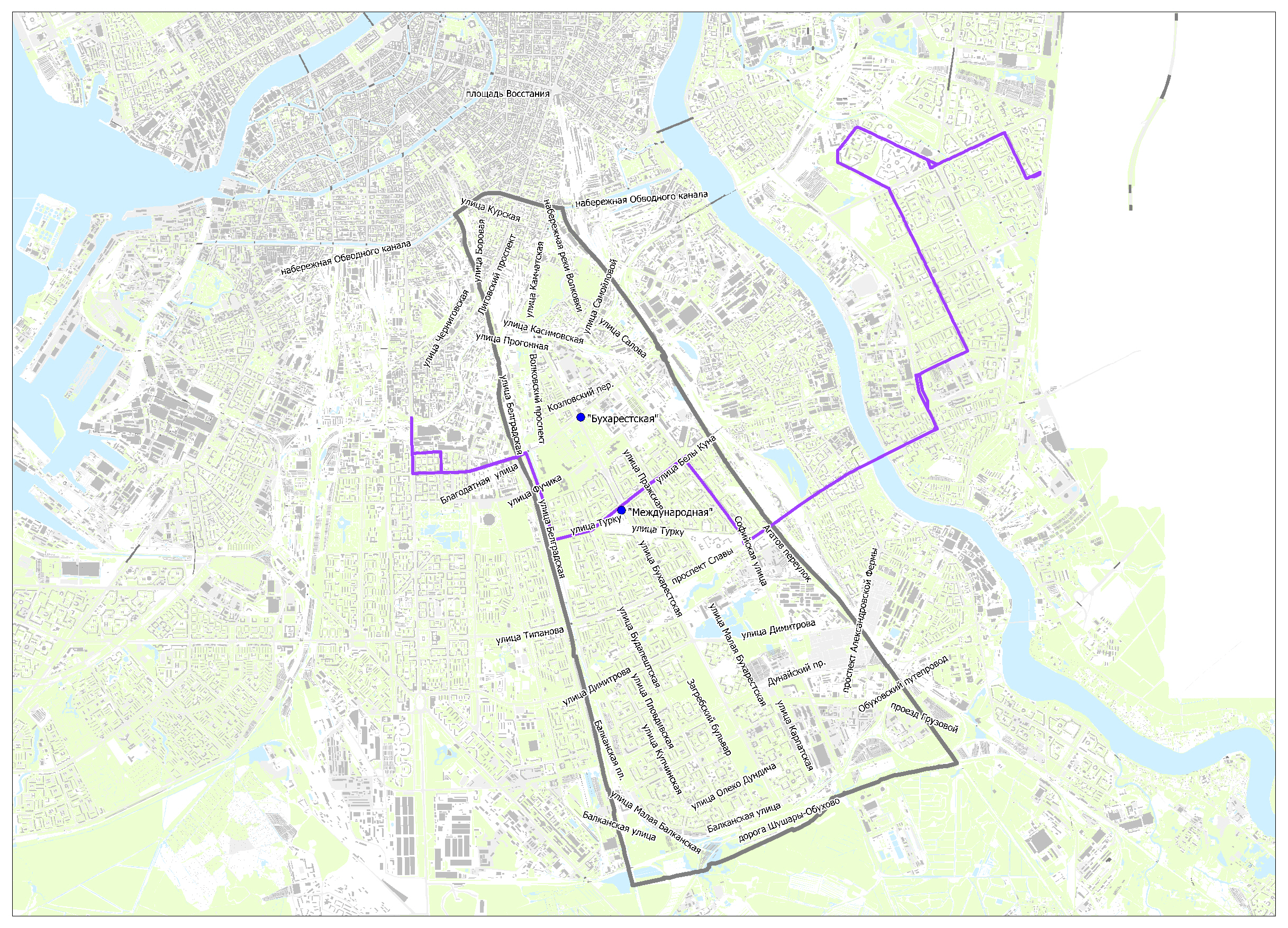 Предлагаемые схемы движения маршрутов социального транспорта к вводу в эксплуатацию станций метро "Бухарестская" и "Международная"
