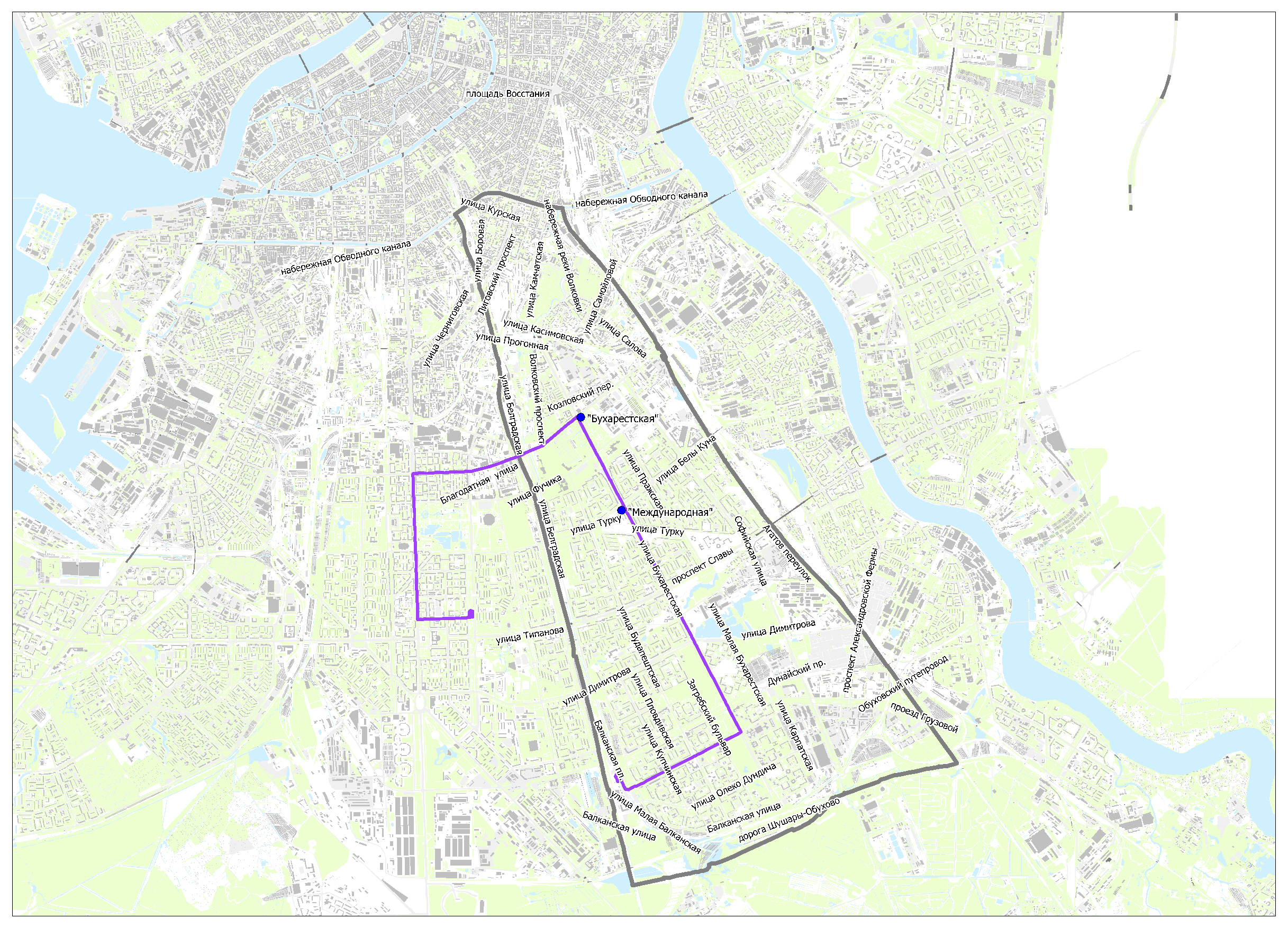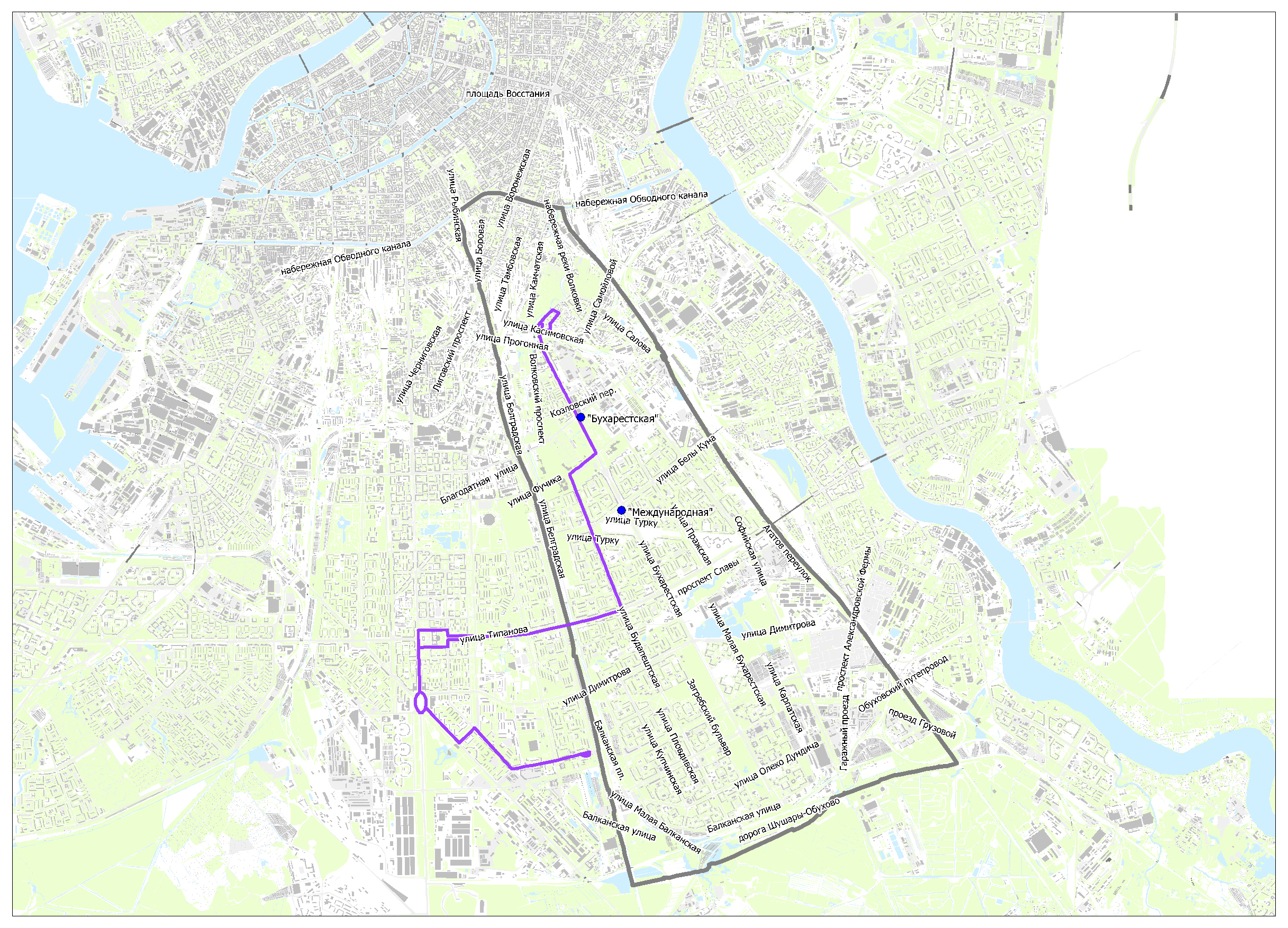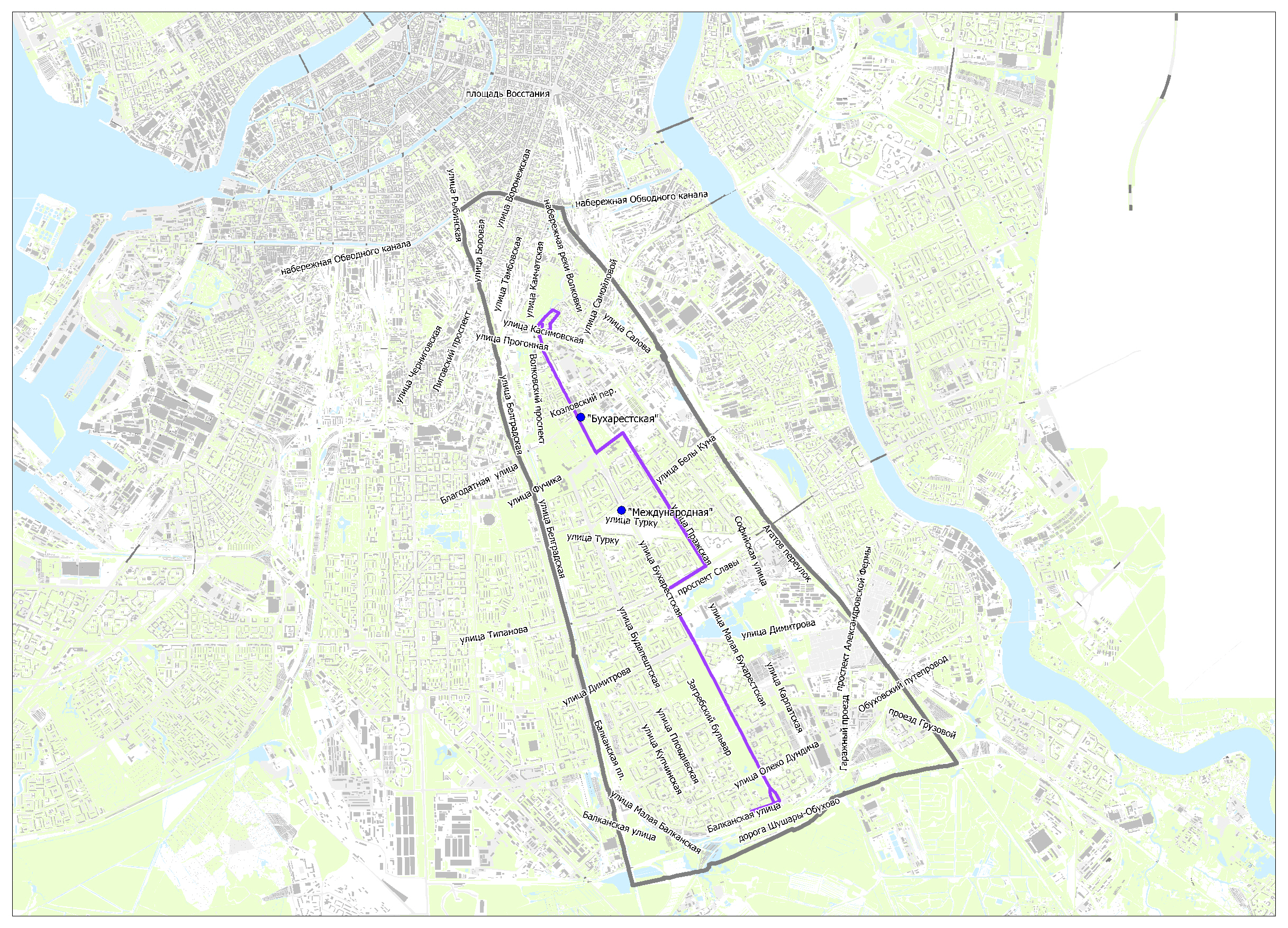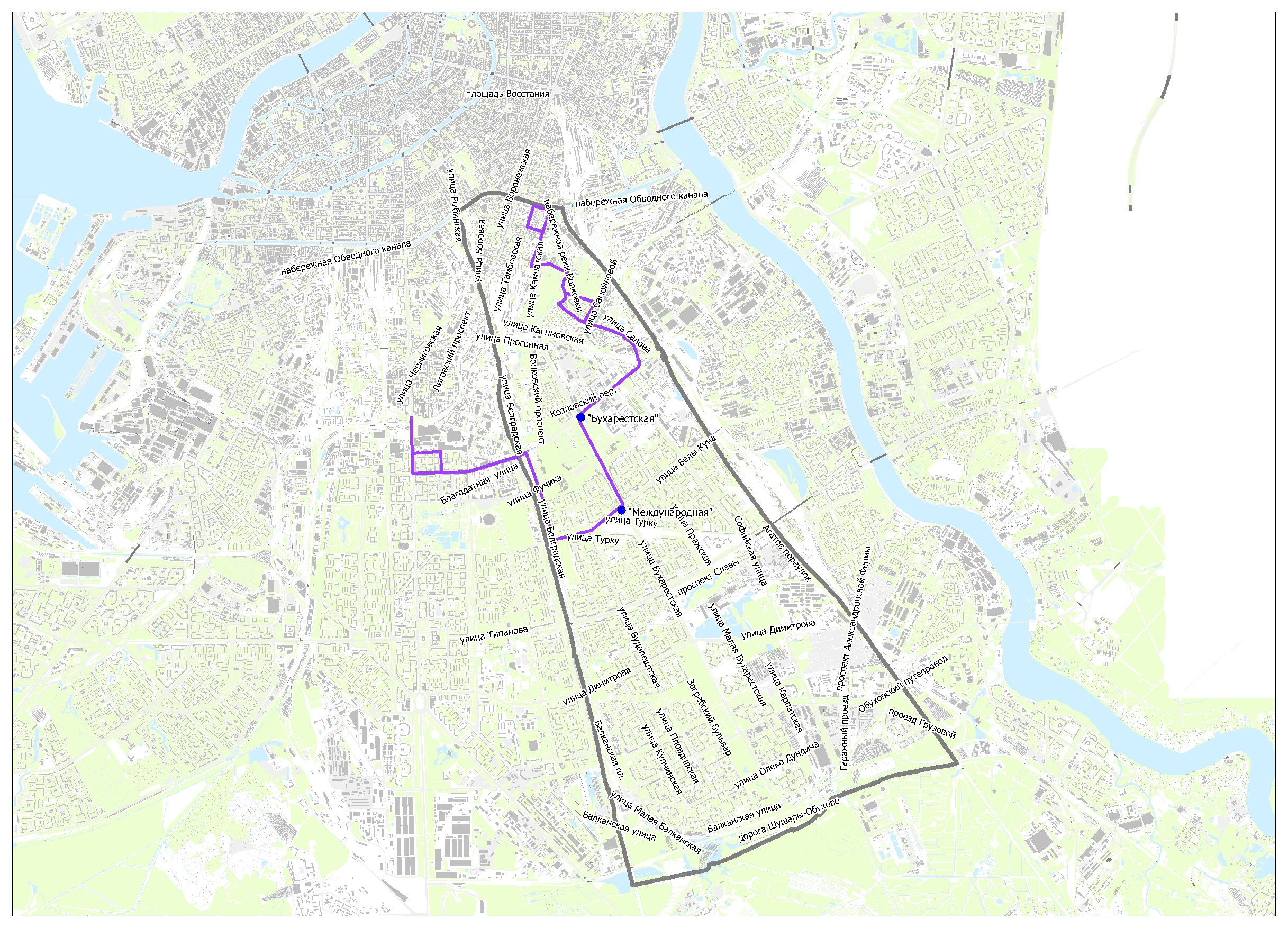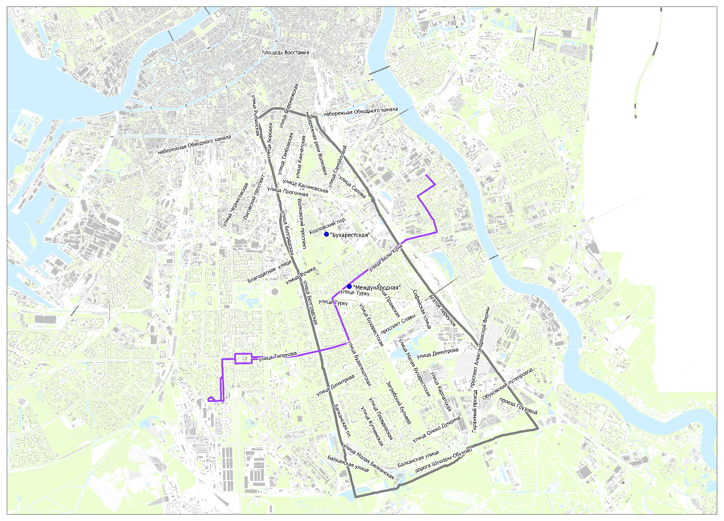 Предлагаемые схемы движения маршрутов социального транспорта к вводу в эксплуатацию станций метро "Бухарестская" и "Международная"