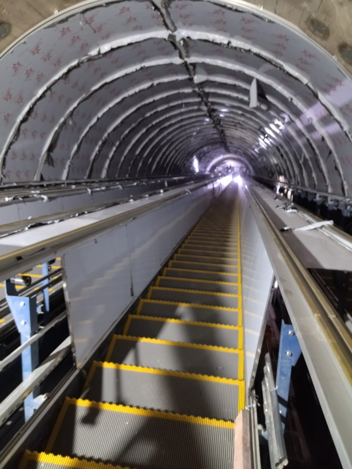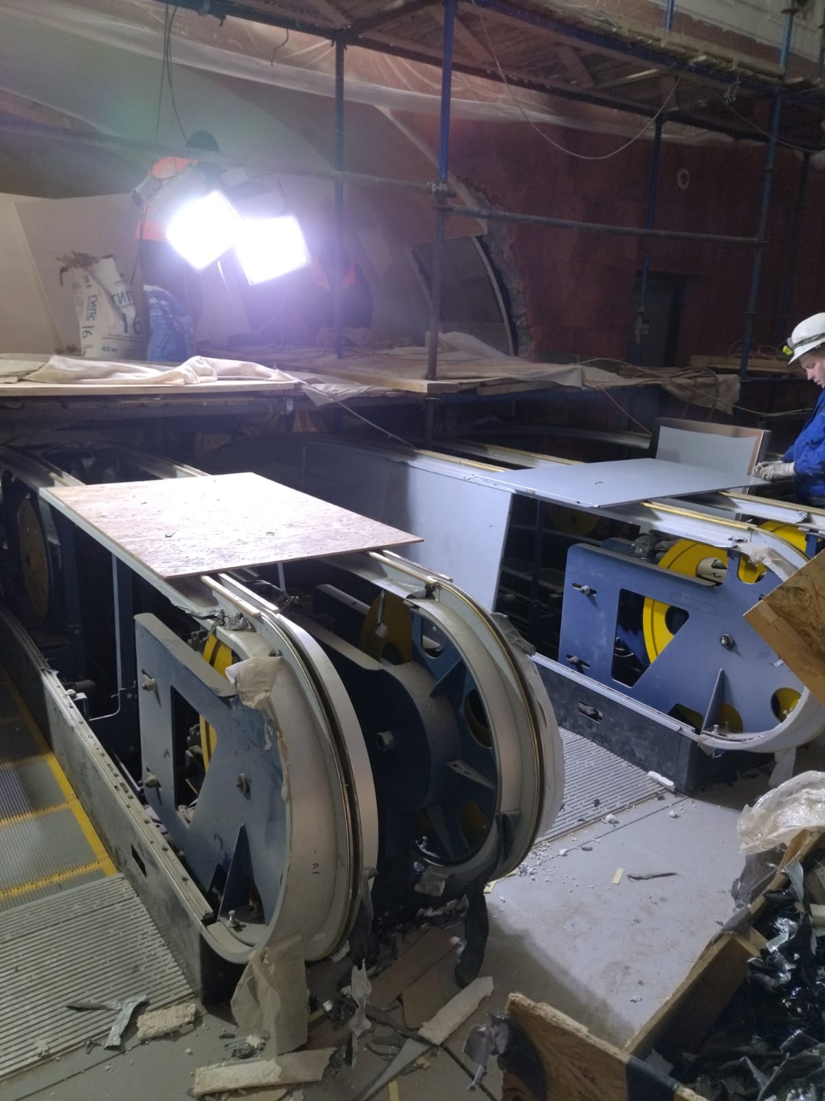 20.11.2021 - Организация ЗАО «Эс-сервис» продолжает монтажные работы на станции «Технологический институт 1» Петербургского метрополитена. Закончена установка цепей и ступеней на всех 4-х эскалаторах. Работники начали установку боковой и средней балюстрады.