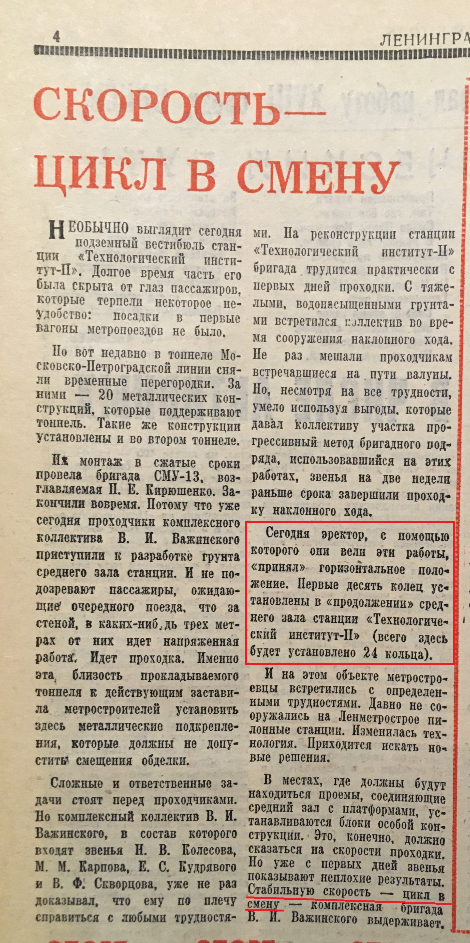Намедни, разбирая фотофайлы, наткнулся на одну любопытную статейку в газете "Ленинградский метростроитель" №16 от 26.04.1978 г.