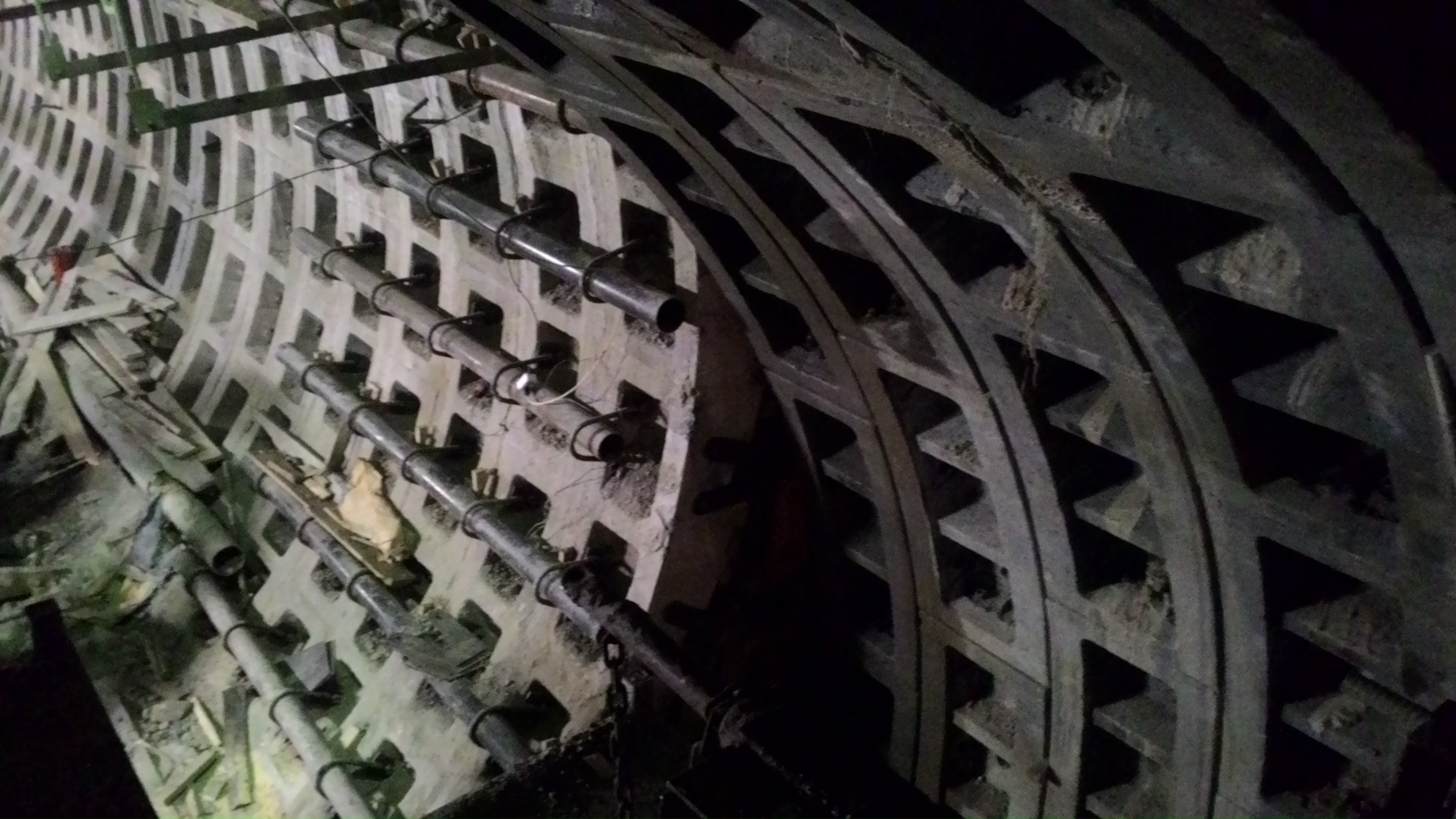 Кстати, начали разрабатывать камеру для сооружения рамы усиления, совмещённую с камерой прорезных колец тупика, в средний тупик за станцией из вент-тоннеля к тупиковому участку второго пути. Камеру для прорезных колец продолжат проходить после бетонирования рамы усиления проёма.