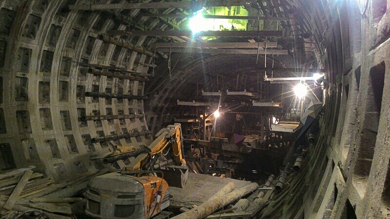 Позавчера смонтировали последнее 224е кольцо среднего станционного тоннеля, таким образом соеденив ССТ с ТПП. Теперь осталось забетонировать примыкание..