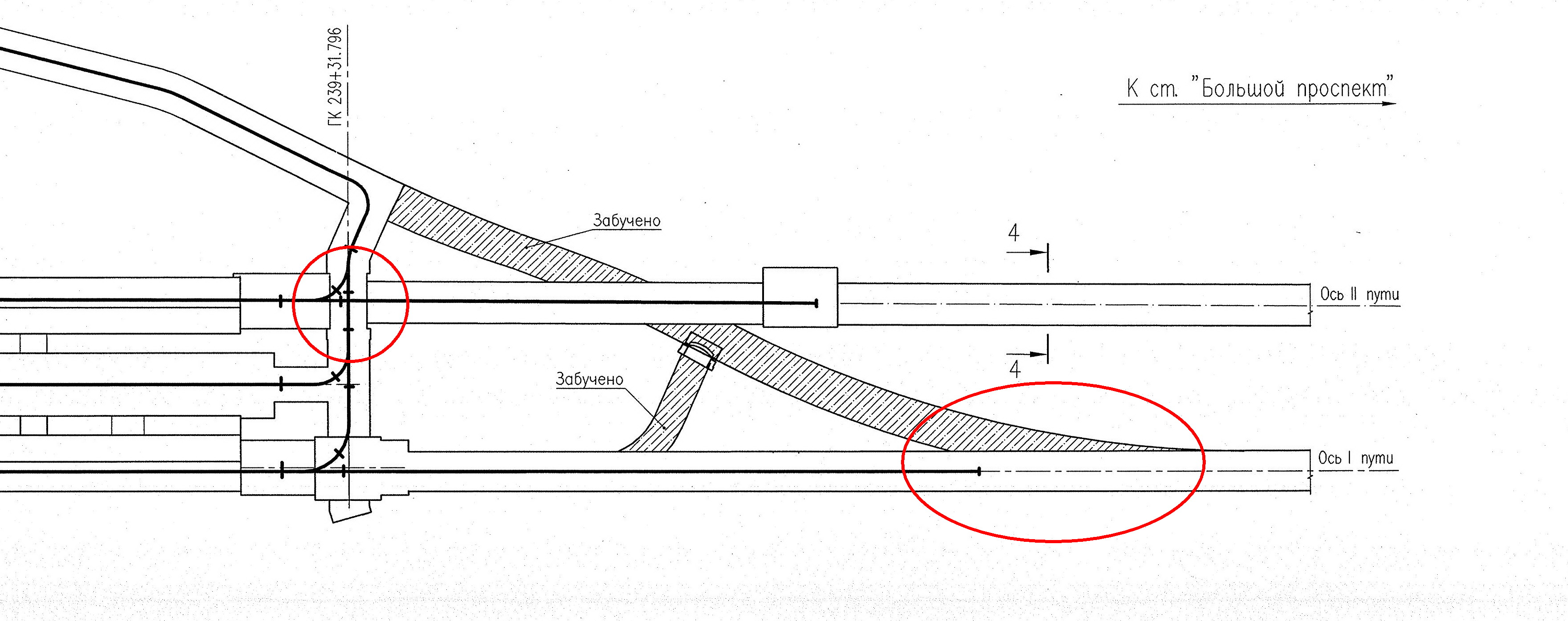 Не знаю насчёт выгоды, не уверен что так будет лучше. Для этого надо реализовать вариант как на чертеже, а по плану этот этап будет позже. Видится несколько проблем. Придётся останавливать проходку по первому пути на время переборки примыкания и во время прохода щита через камеру пересечения (эти места отмечены красным). Проходка щитом через построенный тоннель тоже вопросы вызывает. Ну и одновременная откатка из четырёх забоев по одному тоннелю - проблематично.