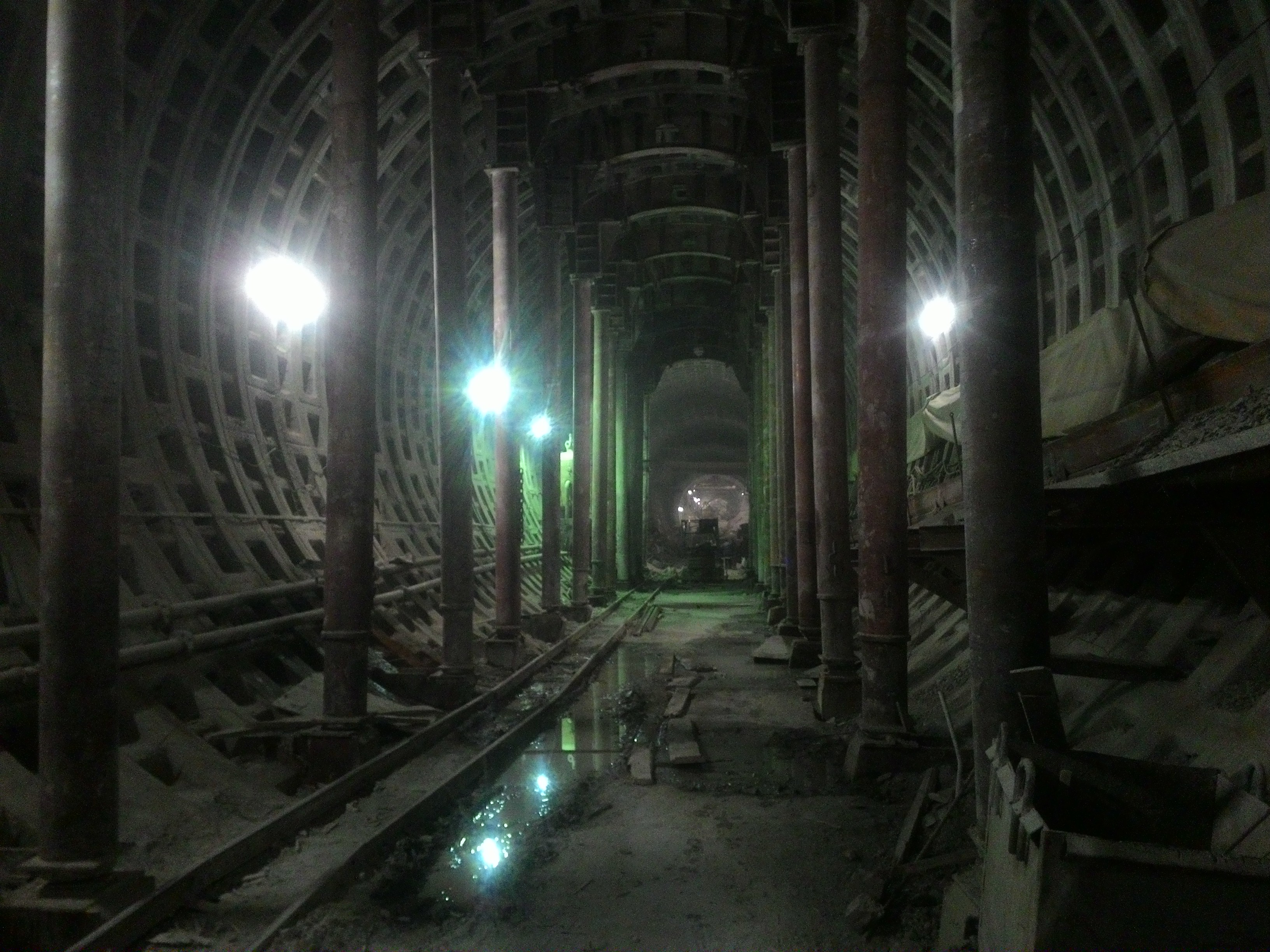 Перебирать пилот-тоннели на станционный диаметр в границах натяжной камеры ещё нельзя - натяжная не построена. Эти участки будут сделаны позже.