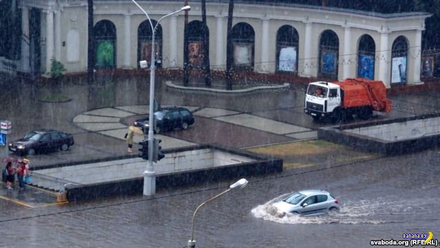 GelezinisVilkas, персонально для Вас показываю, какие бывают потопы во время тропических ливней (Минск), а не рядовых дождей, когда дождевая канализация просто не справляется с огромным объёмом поступающей воды (все фото взяты из Интеренета). В Санкт-Петербурге, между прочим, такие ливни тоже периодически бывают.