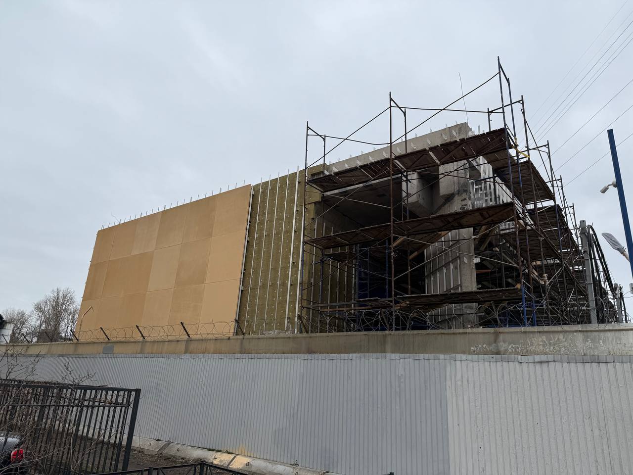 Все монолитные работы с вестибюлем завершены, перекрытия готовы. Идет установка вентилируемого фасада по периметру здания. Строители приступили к облицовке некоторых колонн, и сейчас уже можно представить, как будет выглядеть входная группа.