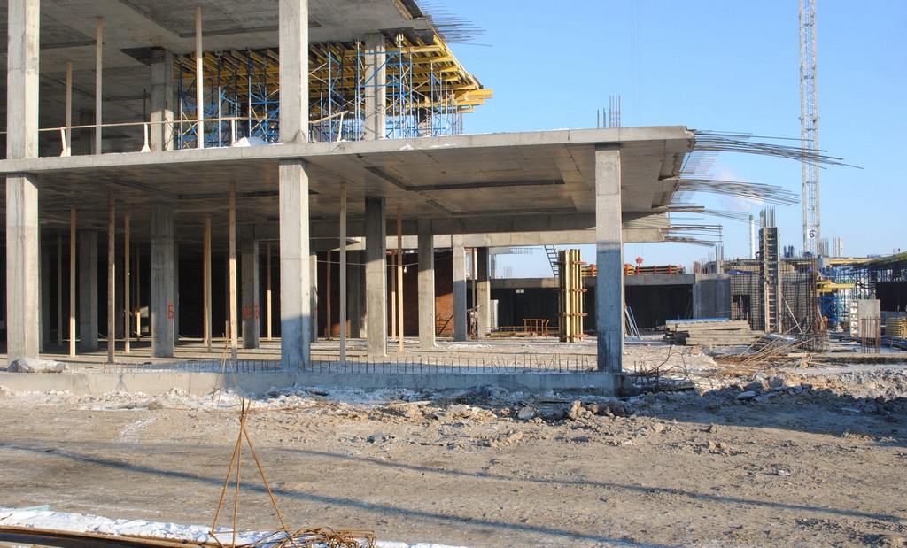 он наверно в два раза больше международного, а довели пока только до 2 этажа