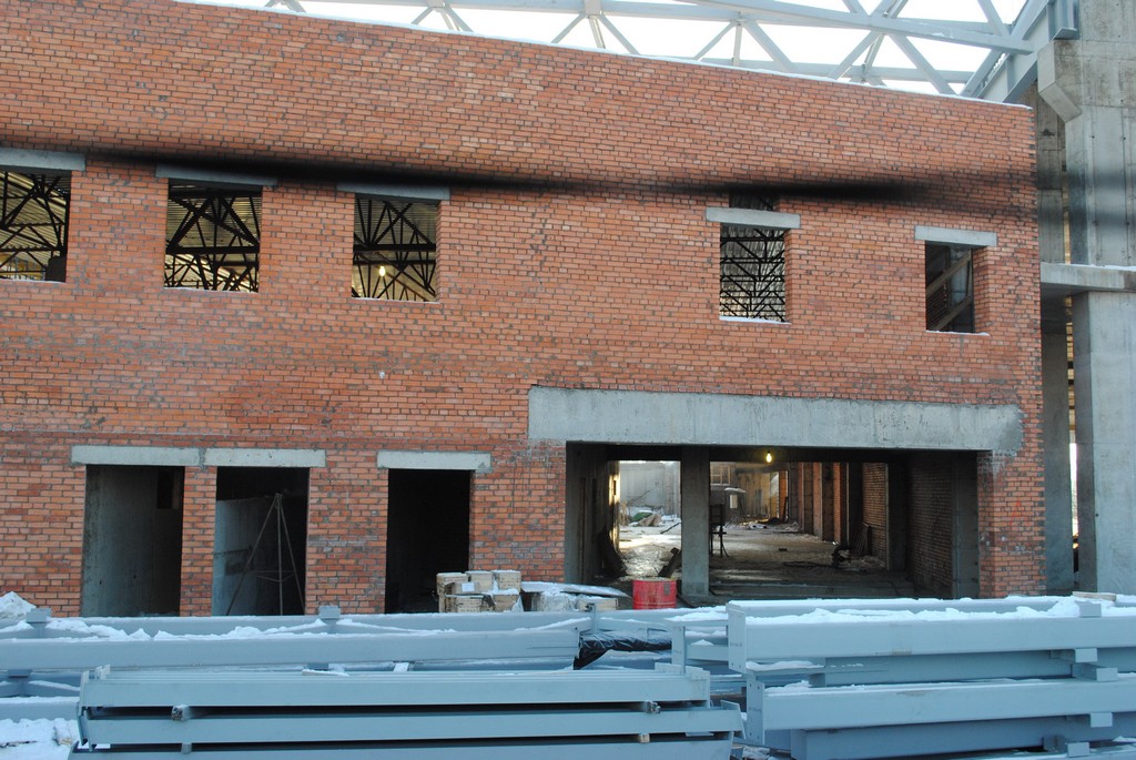 как видно по фоткам в красном кирпичном здании (вестибюль) пока в основном стены