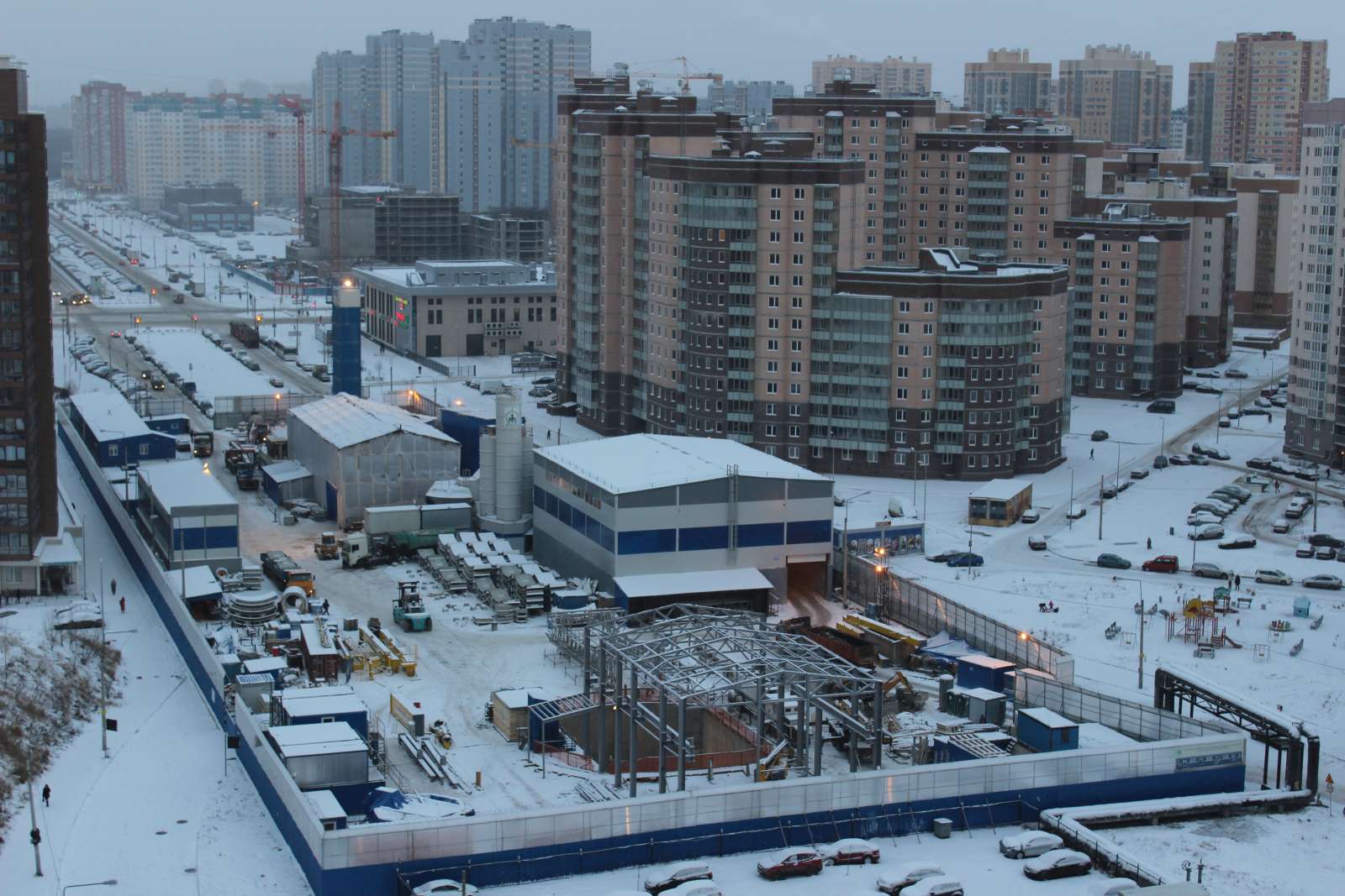 Вчерашнее фото стартового котлована на Туристской. Сооружение над дальним стартовым котлованом обтянули (надеюсь временно) чем-то наподобие плотной плёнки, крыша пока покрыта брезентом. Работа кипит, грунт вывозят, тюбинги привозят.