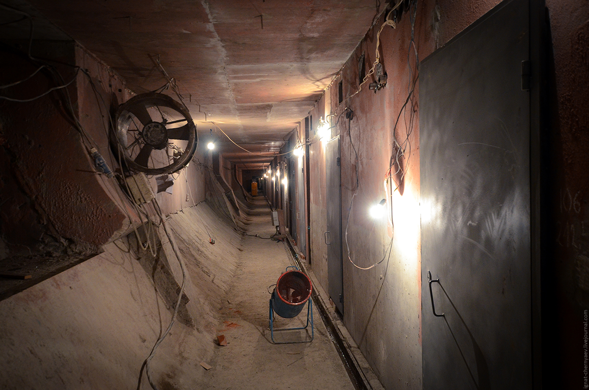 Вид от шахтного ствола 624 на северный подходной тоннель. 2017.10.01.