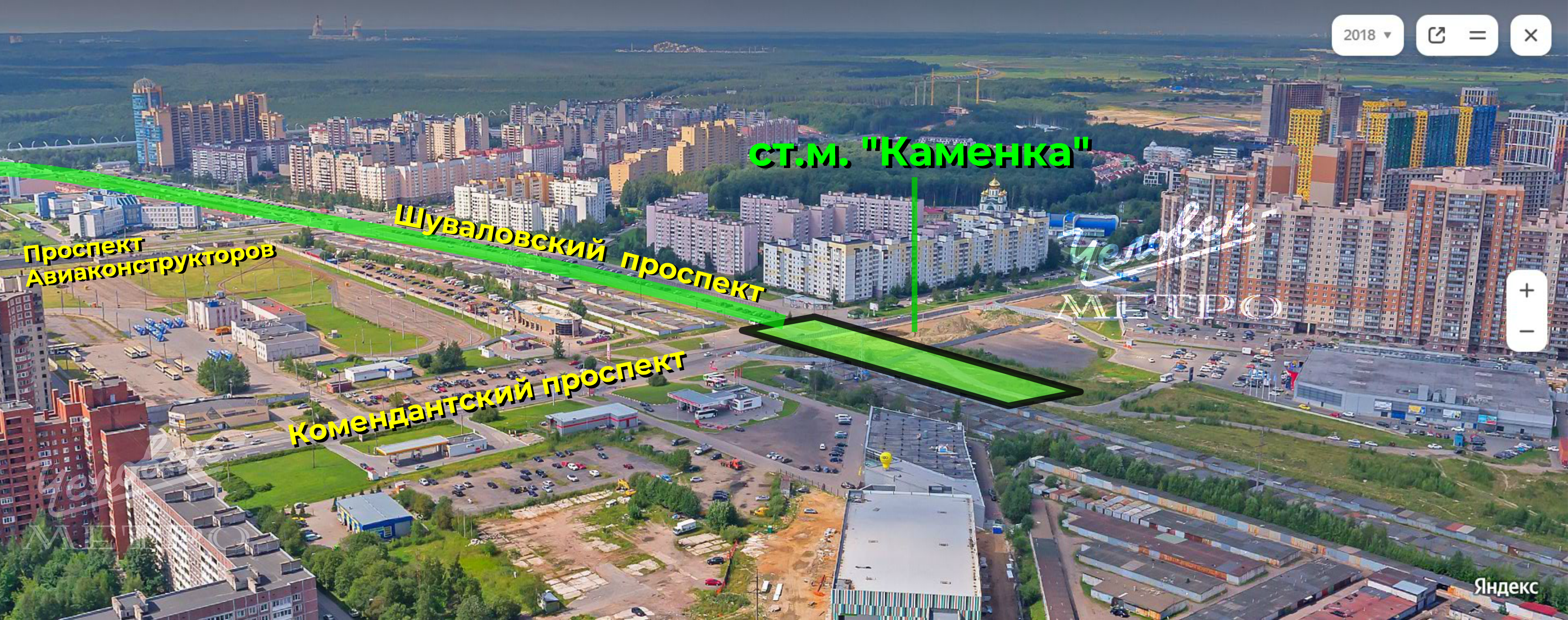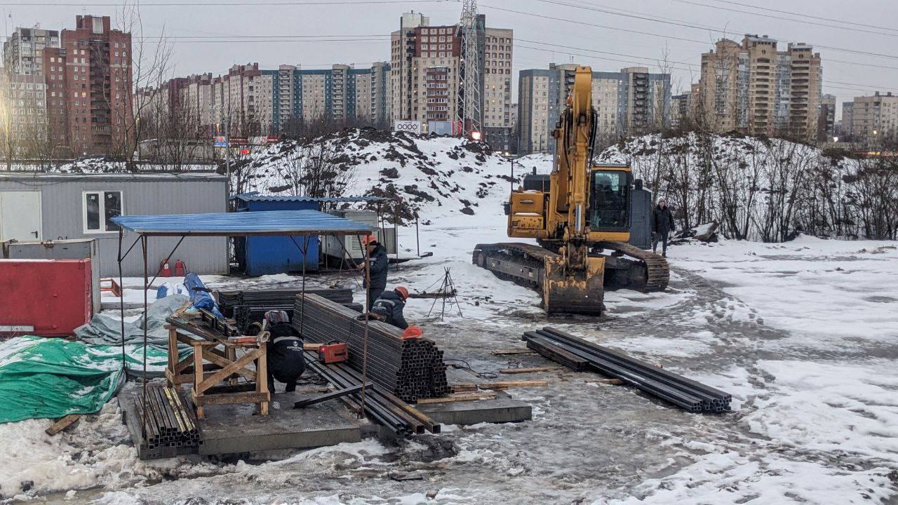 В Приморском районе Санкт-Петербурга, рядом с пересечением Комендантского и Шуваловского проспектов, продолжаются подготовительные работы для строительства станции «Каменка» участка Невско-Василеостровской линии метро.
