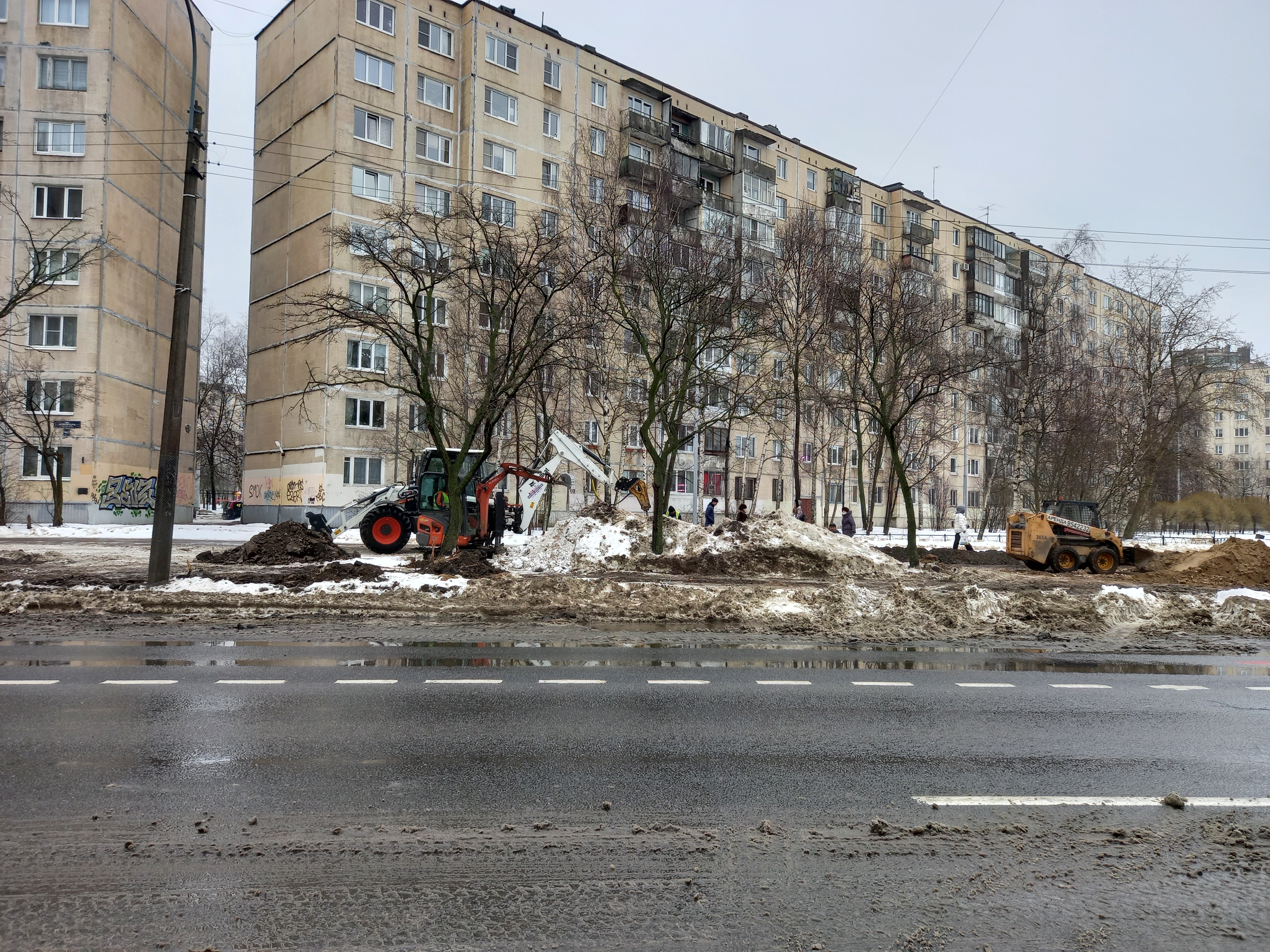 На данных фото идут работы напротив дома 12 по Олеко Дундича. Установлено несколько мачт тротуарного освещения, закладывается кабель под землю. Вырыты траншеи под кабель мачт уличного освещения. В общем, работа кипит.