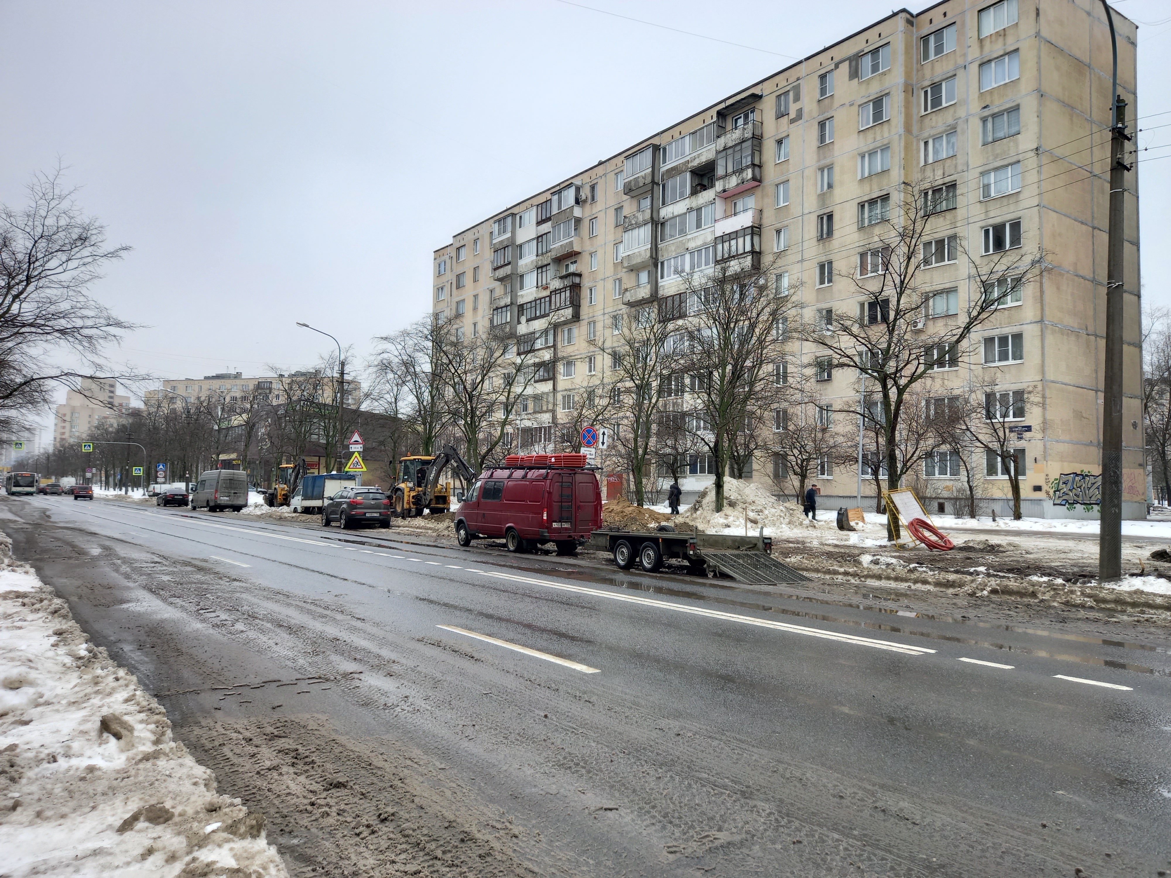 Нечётная сторона: мачты уличного и тротуарного освещения готовы от Бухарестской до Купчинской улицы.