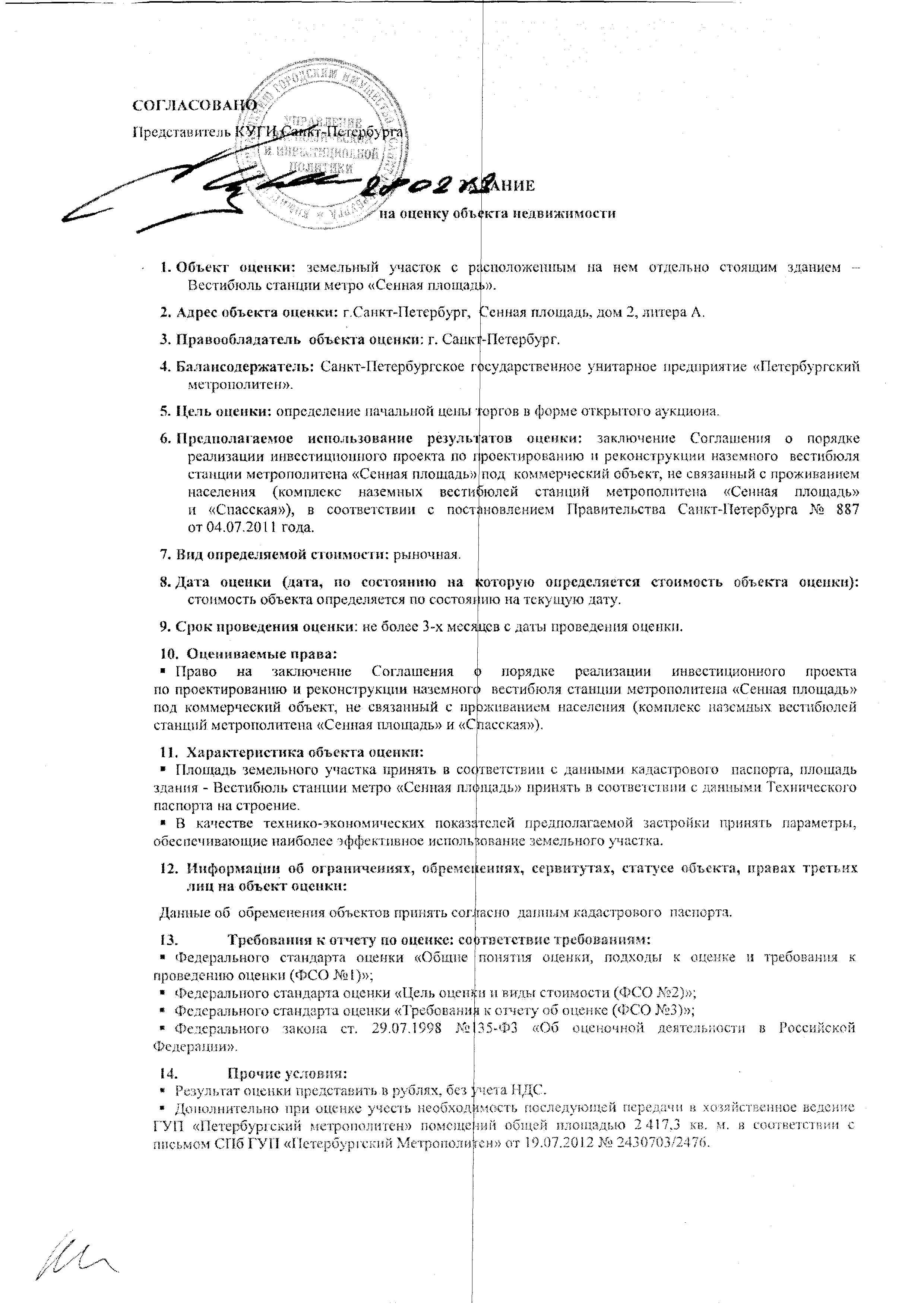 ГУП «Петербургский метрополитен» приглашает принять участие в мониторинге цен по определению начальной цены торгов в форме открытого аукциона на право заключения соглашения о порядке реализации инвестиционного проекта по проектированию и реконструкции наземного вестибюля станции метрополитена «Сенная площадь» под коммерческий объект, не связанный с проживанием населения (комплекс наземных вестибюлей станций метрополитена «Сенная площадь» и «Спасская»)