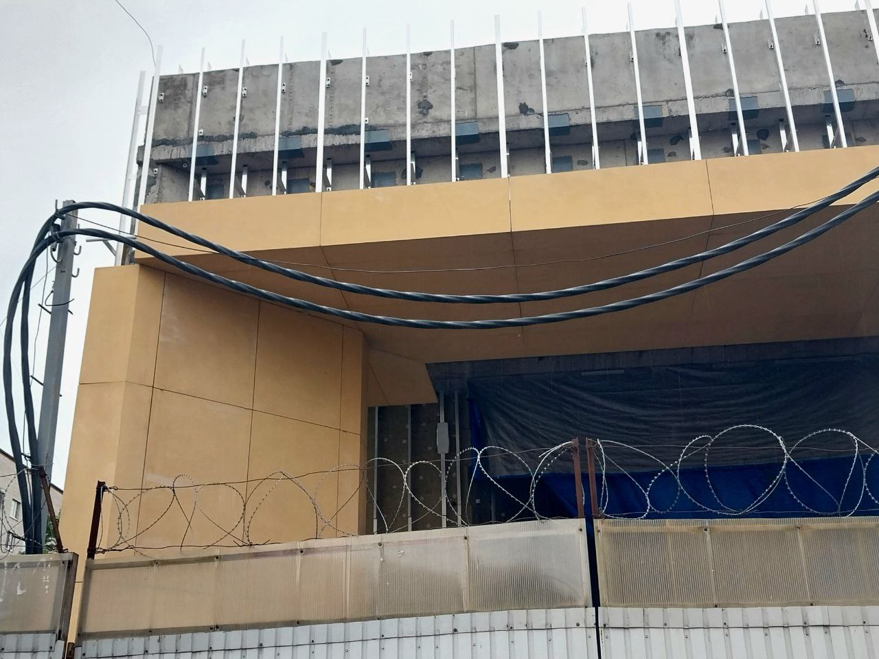 Не узнаю место. А синяя металлическая стенка демонтирована? Что за новая перегородка? И что означает стрелка и прямая линия на правой части стены?