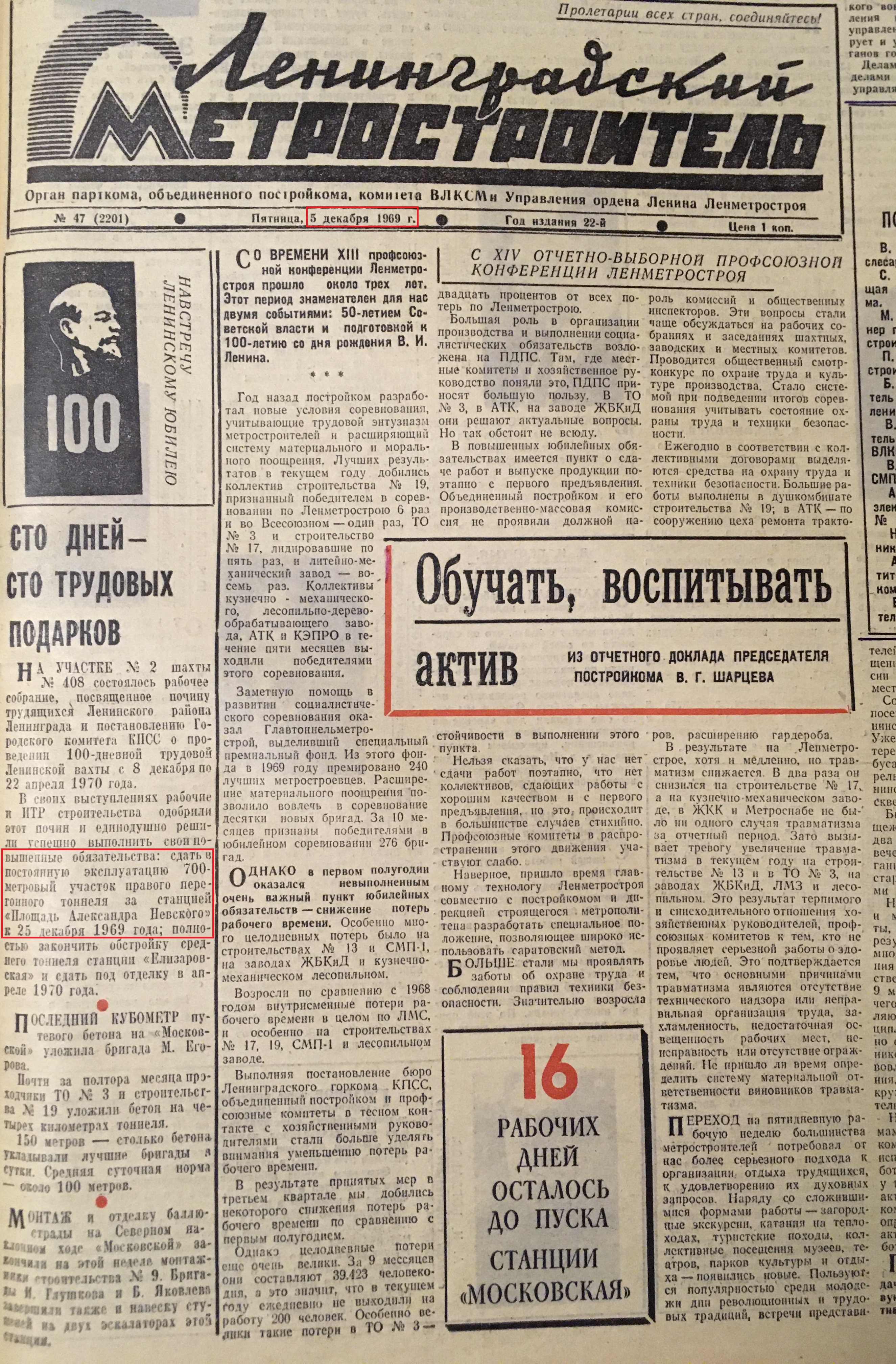 Удлинение правого тупика за станцией "Площадь Александра Невского" на 700 метров было выполнено в конце 1969 года.