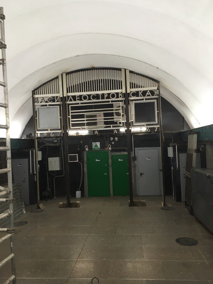 Подземный зал станции метро «Василеостровская» вновь станет длиннее. К чемпионату мира по футболу разбирают помещения, из-за которых некоторые двери поездов не открываются.