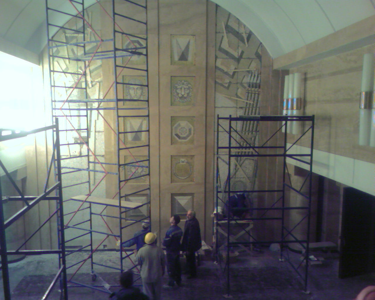 На переход от Сенной завезли панно под наименования нашего города... что за панно посмотреть не удалось, но все что могу сказать.. что как и на самой Спасской панно будет мозаичным.