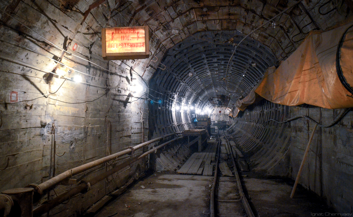 4. Направо уходит подходной тоннель №1 в сторону будущей монтажной камеры на ППТ в сторону Спасской: