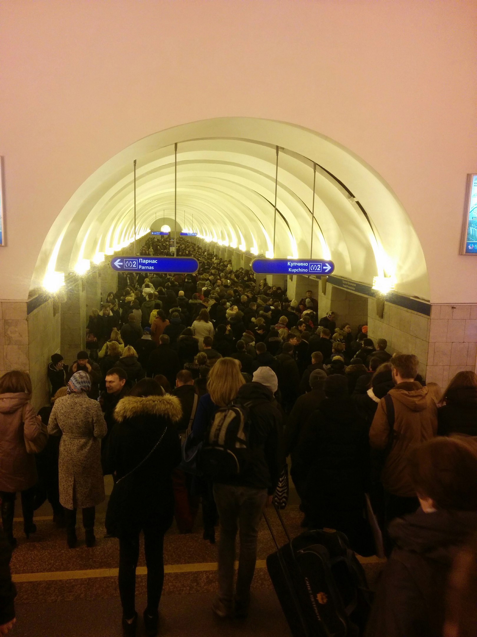 «На станции метро «Озерки» поезда ходят с увеличенным интервалом. Пассажиры ждут посадки на платформе по 15-20 минут и более. Скопилась большая толпа народа», – подтверждает читатель Артем.