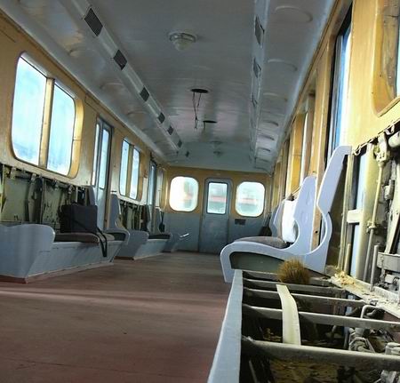 Вот вид салона. Правда, мы уже поставили S-образные поручни на диваны, установили 2 недостававших плафона. Новые подушки для диванов уже изготовлены, будем скоро приделывать.