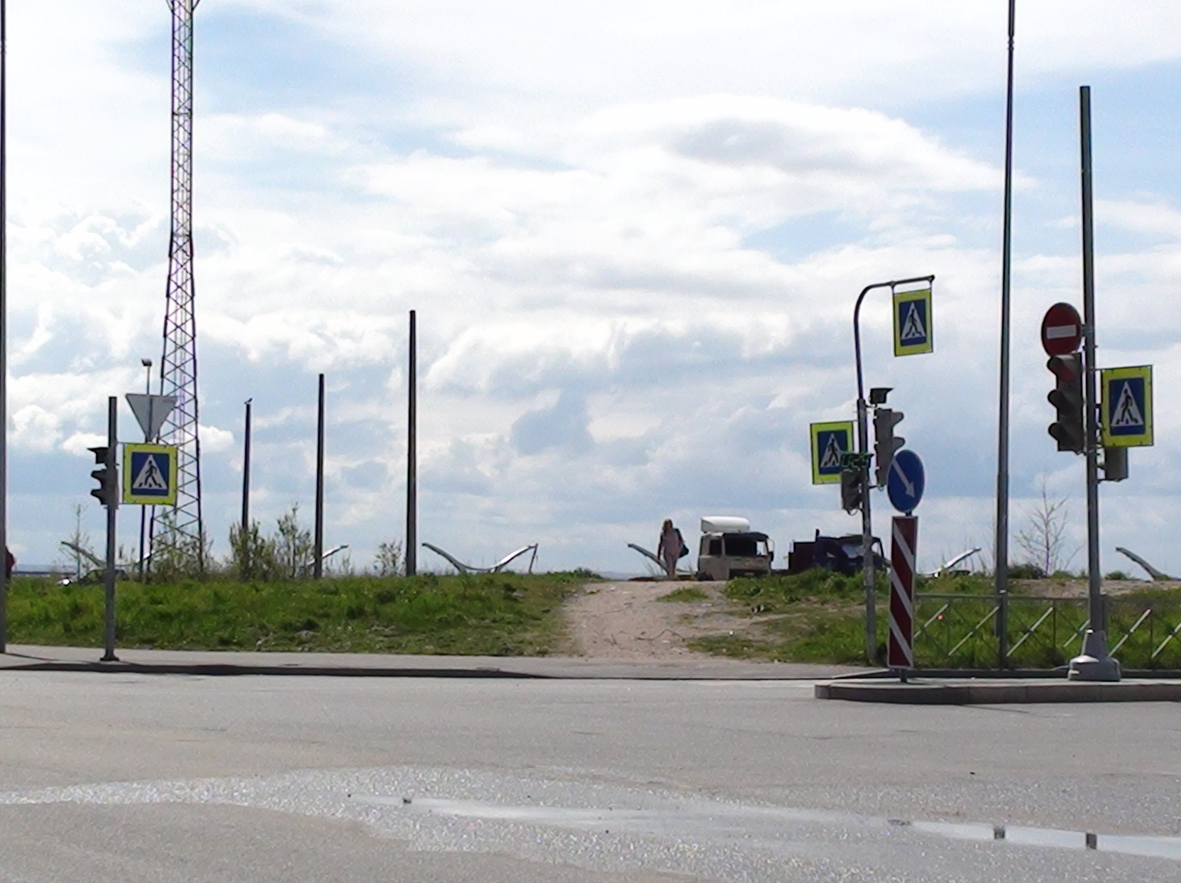 Вобщем, приезжаю чтобы поснимать на видео круизник. Автобус 158 было не дождаться (более 10 минут не было). Пошёл пешком. Прихожу к развилке Кораблестроителей/Мичманской. От светофора справа вижу дорожку в никуда. Светофор слева - аналогично. При переходе человек оказывается на холме, который чуть дальше упирается в забор (намывные территории, принадлежащие Terra Nova). Вижу что-то типа переходного моста, но он ещё не построен, и тропинок к нему нет. Хочу идти вдоль дороги, но пешеходной дорожки не предусмотрено. Иду вдоль дороги, вместе с машинами. Интересный знак встретился. Ооооочень мелко написана информация. С машины не реально прочитать. Конечно, там более важны цифры, но иной раз думаешь о чём-то или разговариваешь с кем-то, и нужно точно прочесть к чему цифры. Поворачиваю в сам порт, смотрю КПП. Меня просят предъявить документ. Показываю паспорт. Говорят - а вы откуда? Я говорю - я житель города, о чём свидетельствует мой паспорт. Говорю, хочу пройти на площадку (НЕ В ЗОНУ САМОГО КРУИЗНИКА). Говорю, там территория не закрытая, на неё нет запрета прохождения каких-либо лиц. Говорю - до круизника около 200 м, говорю - могу паспорт в залог оставить. Сказали, что типа, ща после терактов по миру запретили и туда проход, никого нельзя пропускать кроме пассажиров лайнера. Я говорю - а каким образом можно пройти к нему? Сказали - никак.