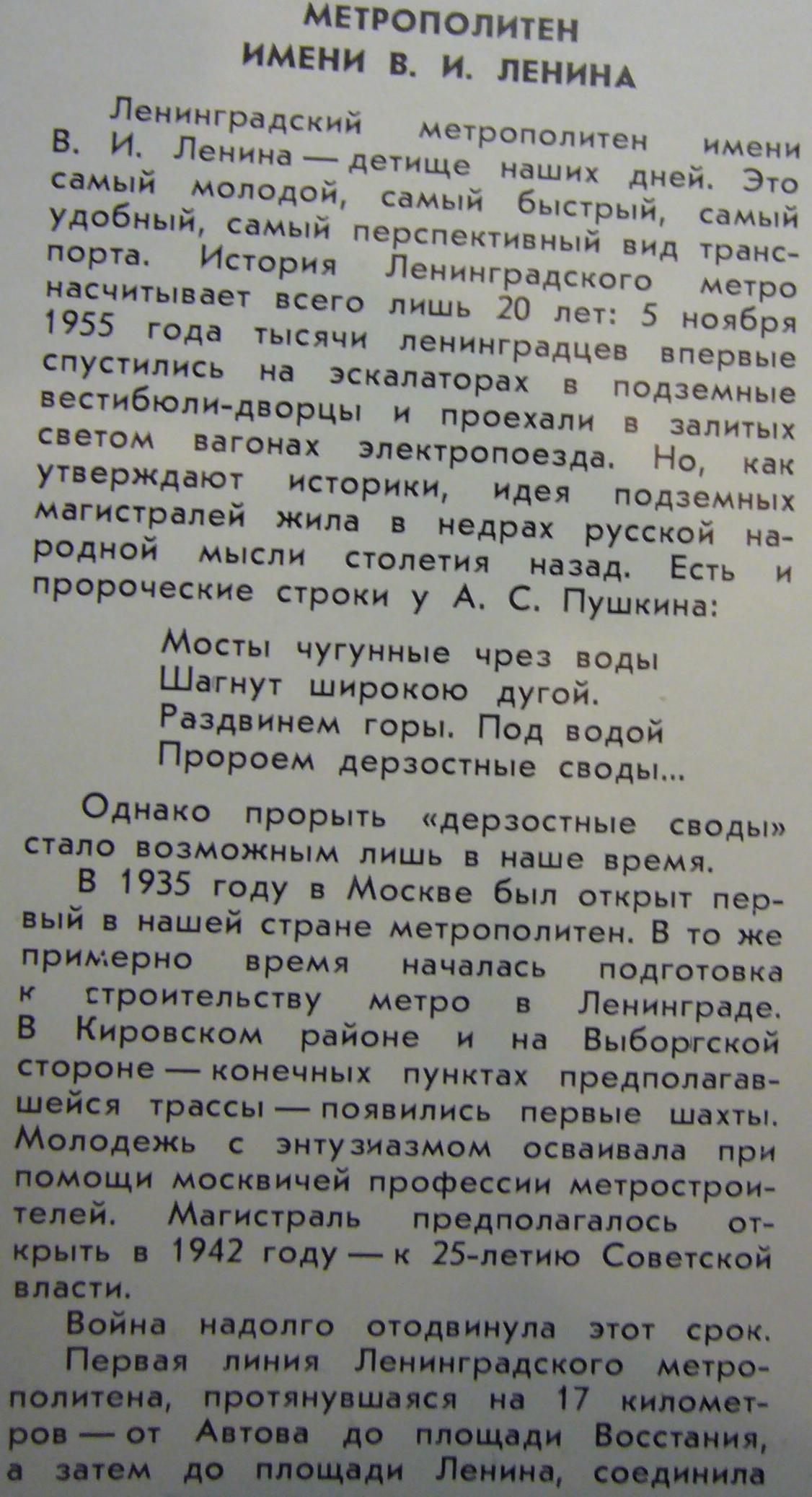 Вот что интересно: на первой странице видим фразу о том, что первую ветку планировали построить к 7 ноября 1942 года, и в то же время есть инфа о начале строительства в январе 1940. Т.е. планировалось установить новый рекорд - построить метро (5-6 станций) за 2 года? Такие бы темпы сегодняшним метростроевцам... =)