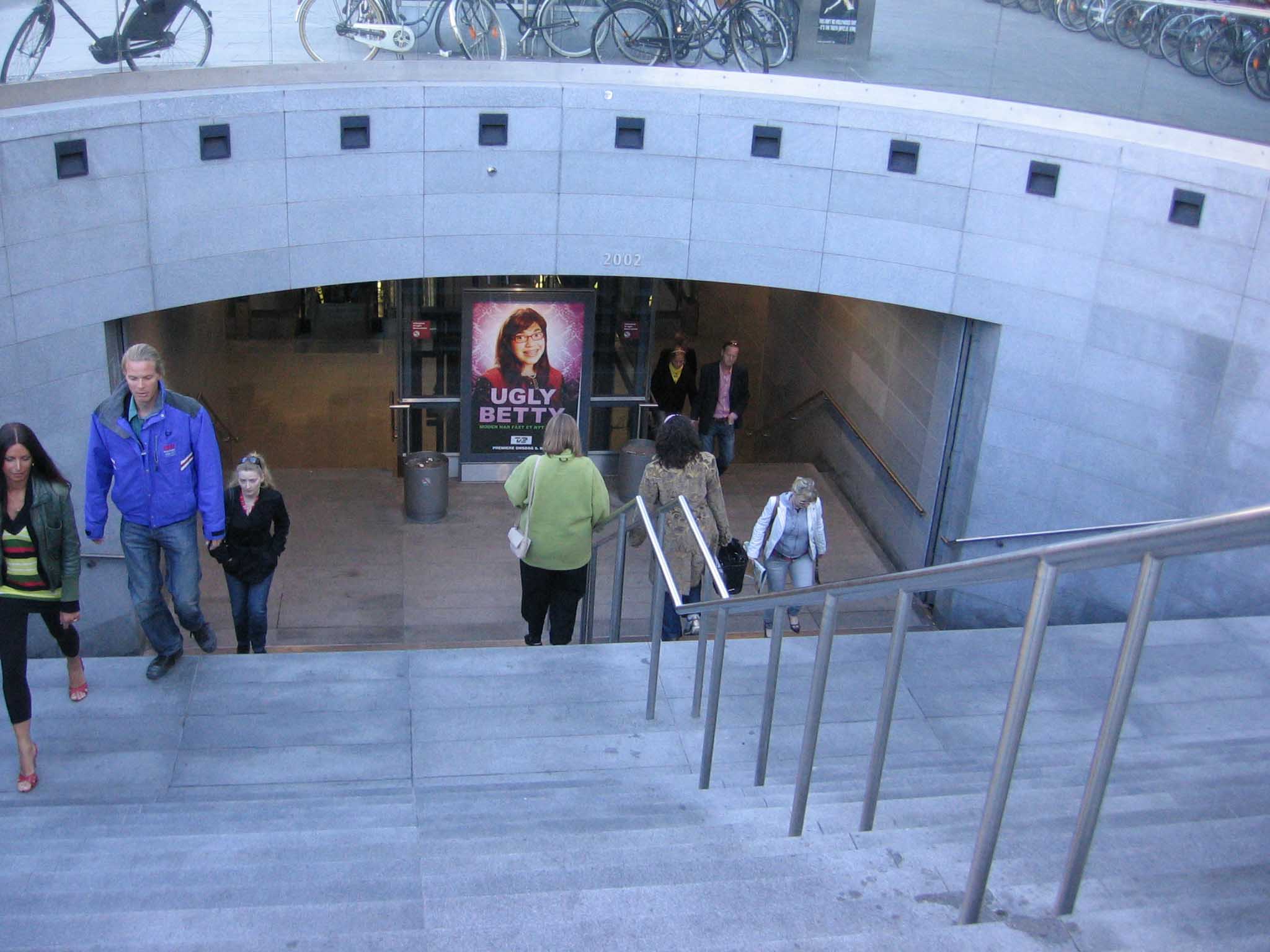 Вход в метро, снаружи не обозначен никак – никаких ярко-красных или ярко-синих букв М, никаких столбиков или типа того…