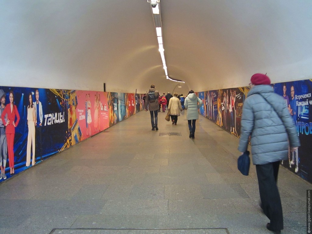 Нет, я постараюсь быть в меру толерантным, конечно... но, зачем оно здесь? Случаются всякие фотовыставки, где и не такие "работы" демонстрируют, но туда идут люди заинтересованные или любопытные. Здесь же это навязывается каждому проходящему. Во что метро превратили... а, простите за серость, что это за переход?
