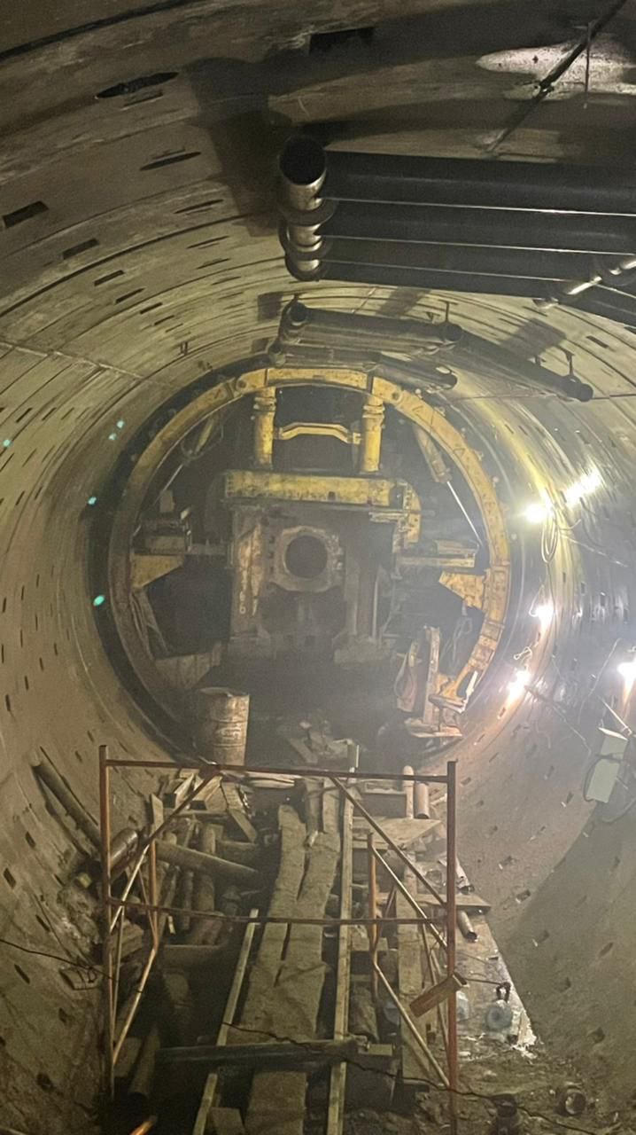 Также, идут работы по сооружению монтажно-щитовой камеры в тоннеле по 2 пути, в котором до конца года соберут ещё один щит для проходки второго тоннеля в том же направлении.