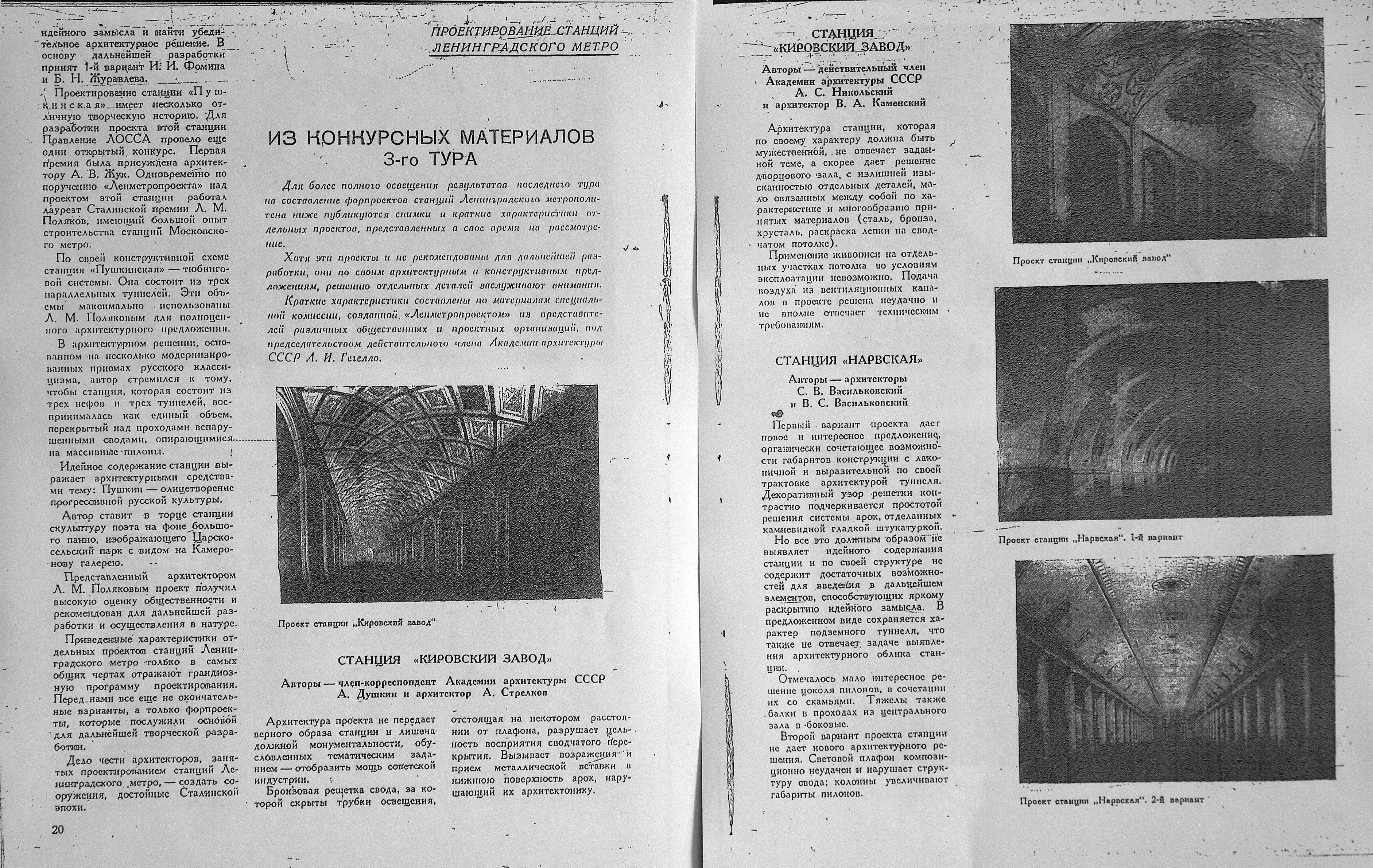 Сюда же — решение, принятое Исполкомом Ленгорсовета в отношении станций «Кировский Завод» и «Нарвская» (январь 1953 г.).